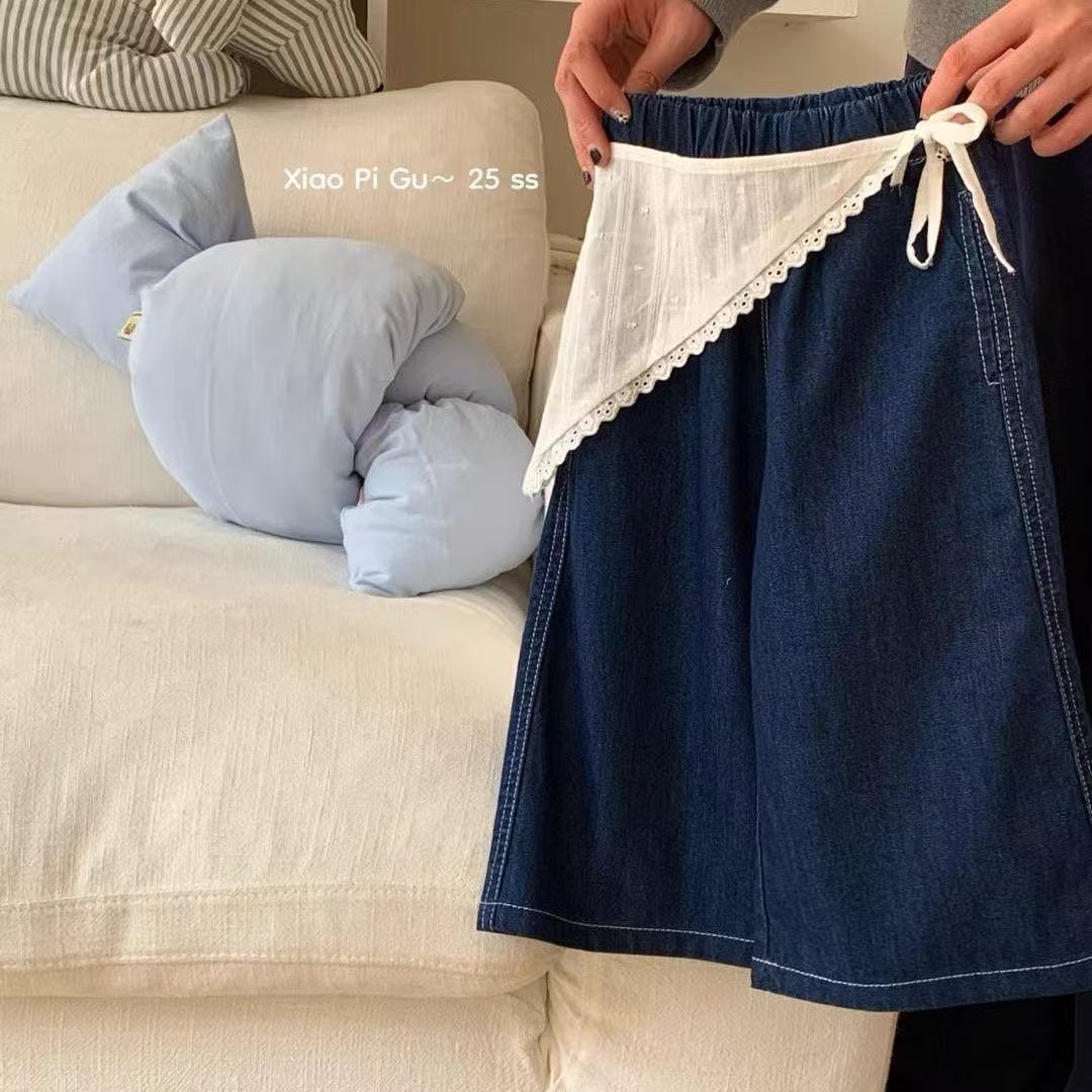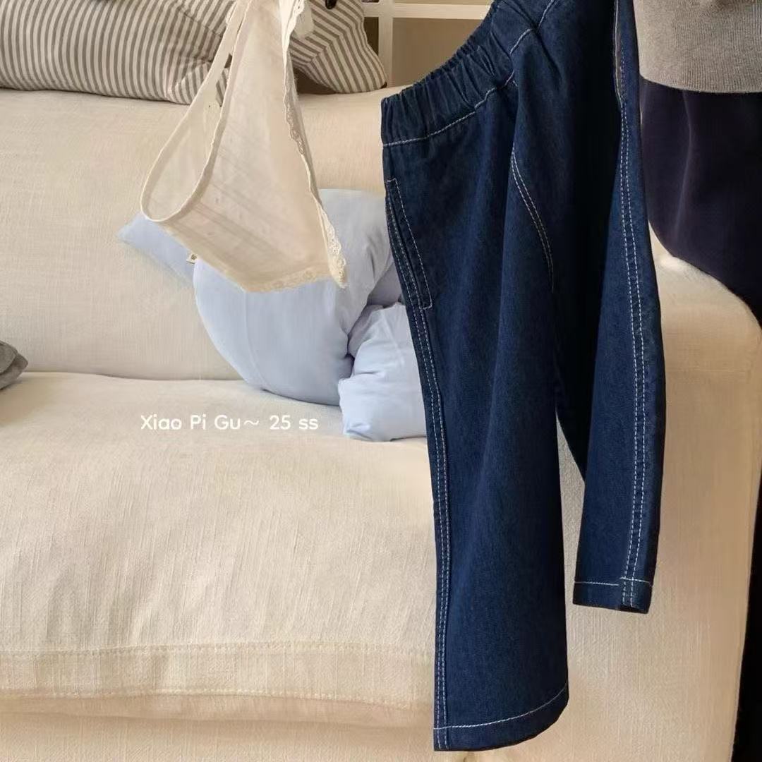 2025 봄 새 아기 소녀 어린이 한국 청바지 오리지널 컬러 스트레이트 다리 바지 서양식 올매치 아트 커튼 세척스토어 가기