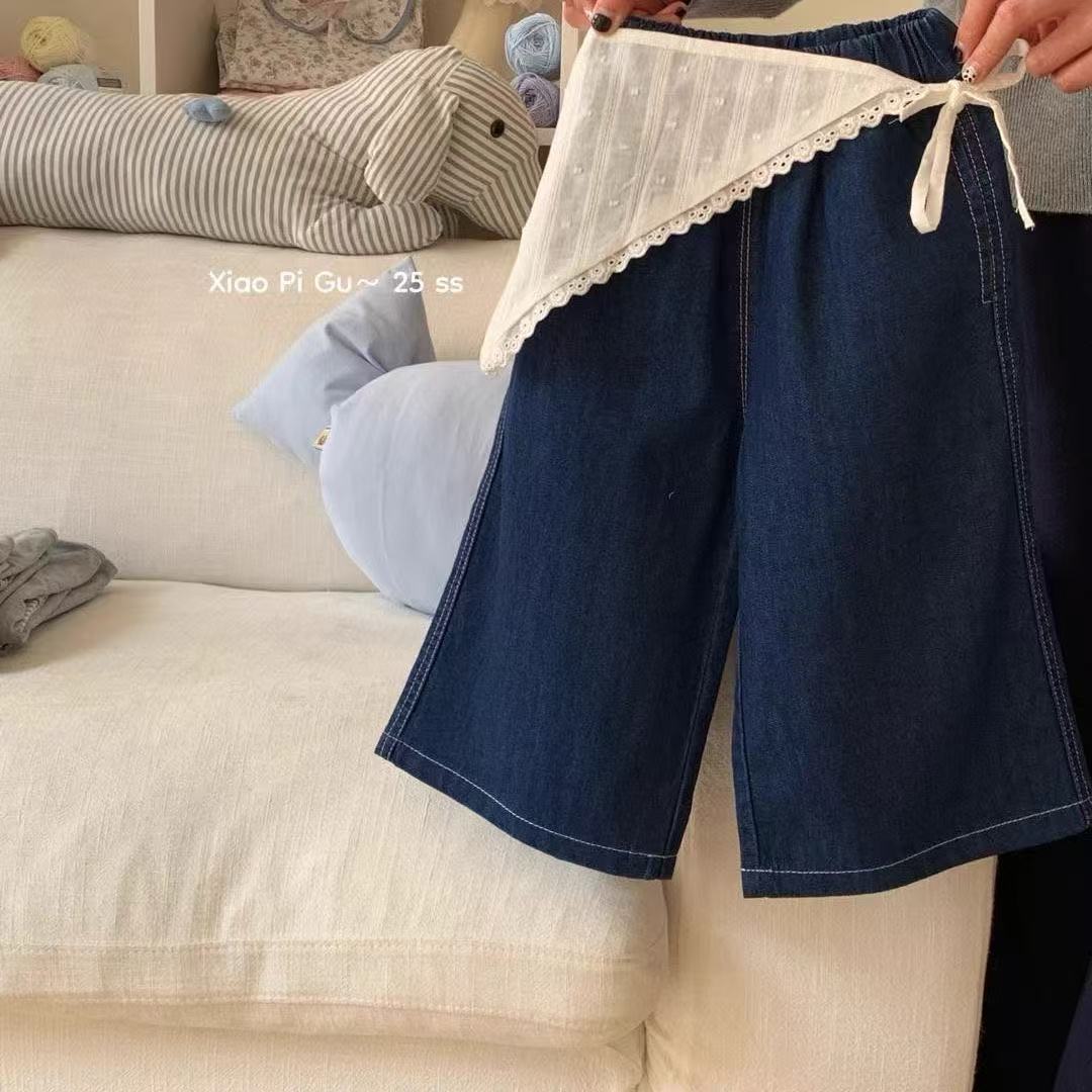 2025 봄 새 아기 소녀 어린이 한국 청바지 오리지널 컬러 스트레이트 다리 바지 서양식 올매치 아트 커튼 세척