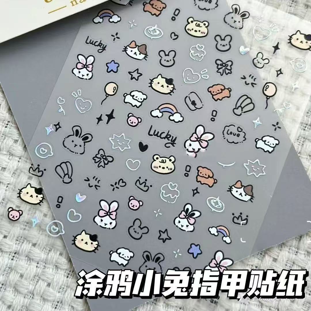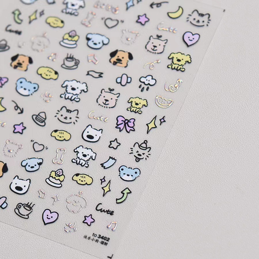 낙서 강아지 네일 아트 스티커 새로운 일본 귀여운 Ins 네일 스티커 만화 어린이 재미 낙서 강아지 스티커