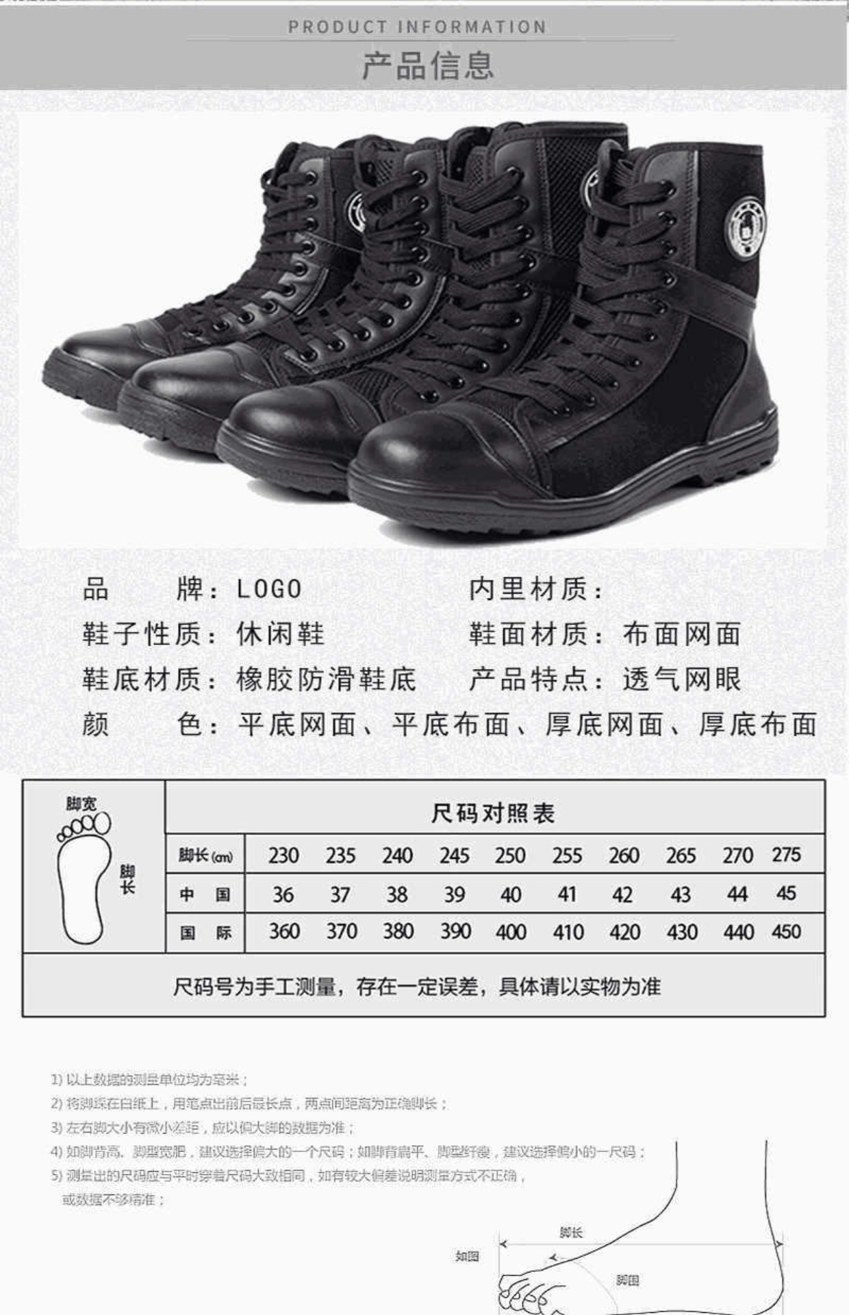 여름 하이웨이스트 캔버스 부츠, 특수작업화, 통기성 군사훈련 경비화, 경비원 순찰부츠, 근무화, 특수작업화스토어 가기