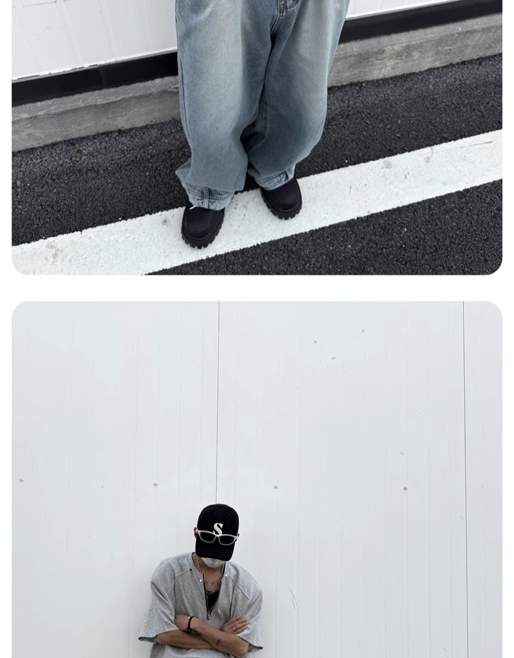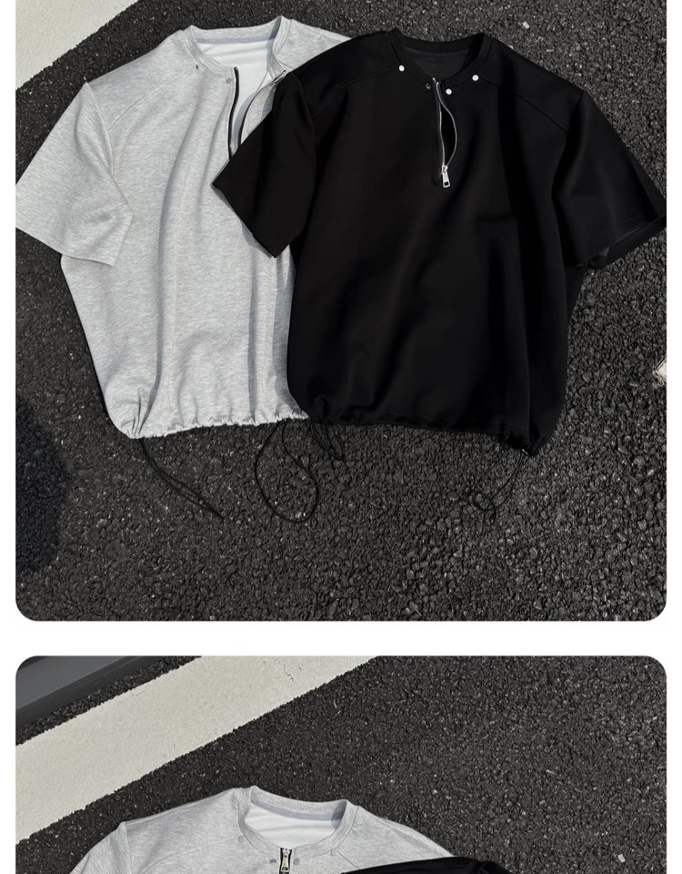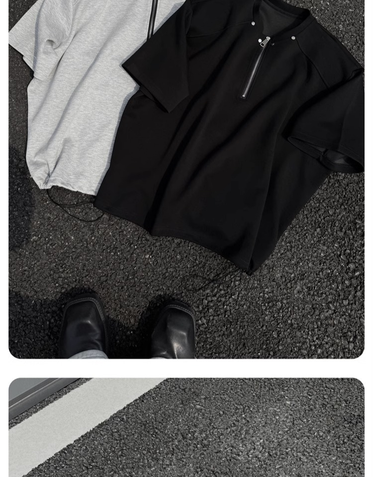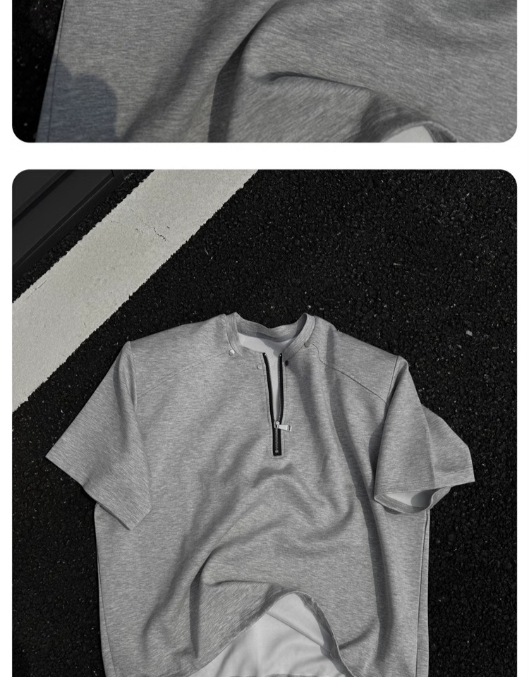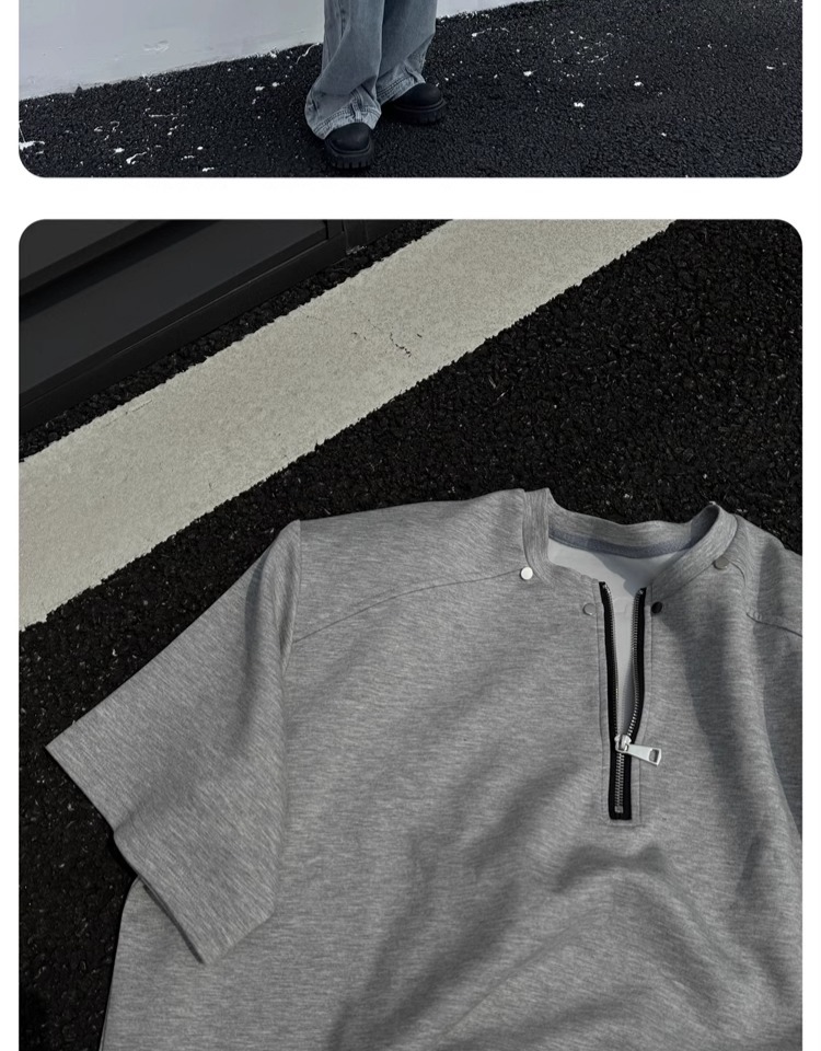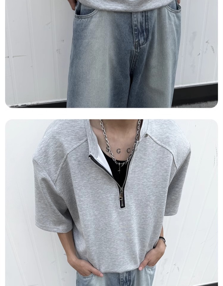 고급 하프 지퍼 어깨 패드 티셔츠 남성용 클렌핏 헤비 쇼트 슬리브 아메리칸 스타일 하이 스트리트 리벳 디자인 하프 슬리브스토어 가기