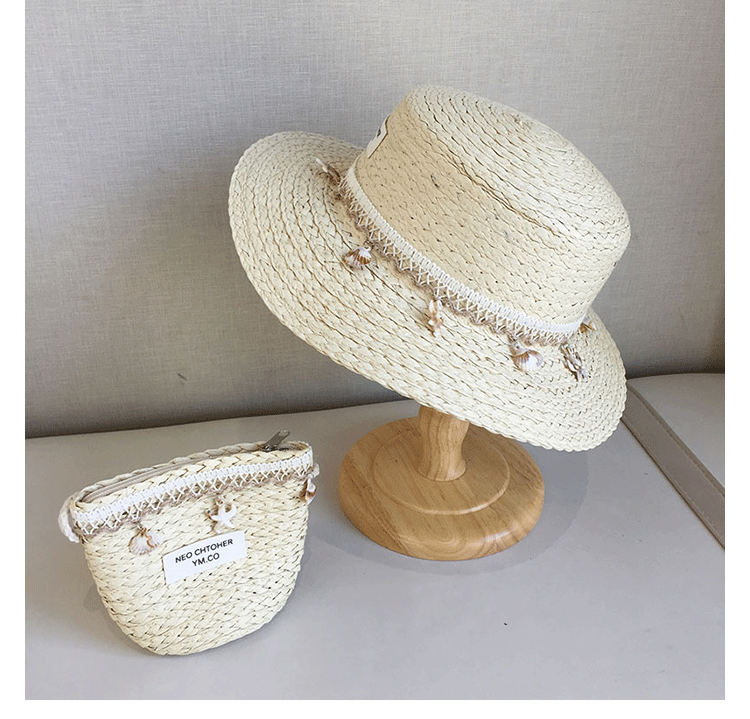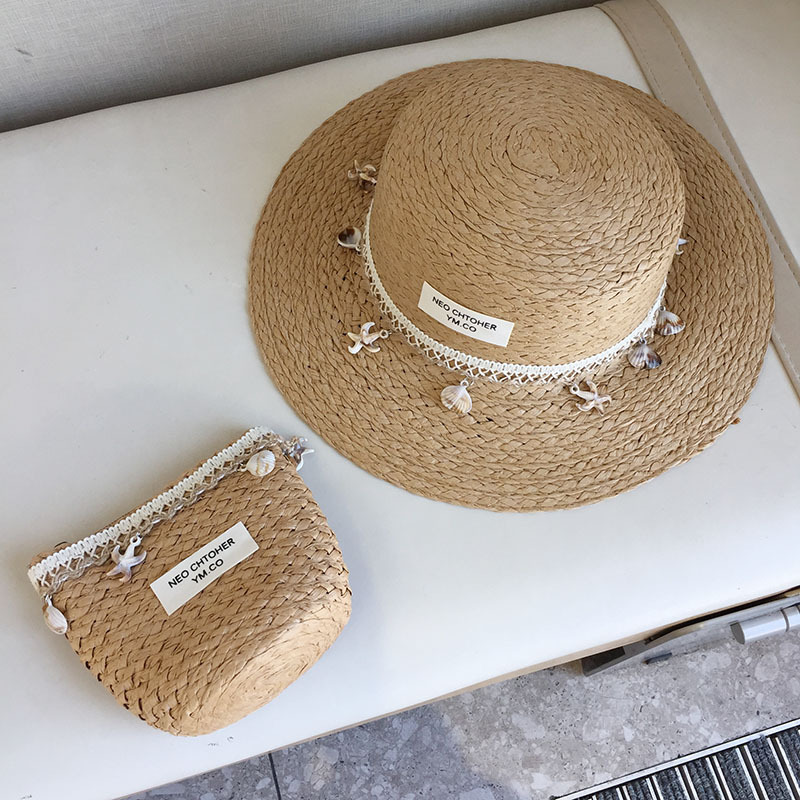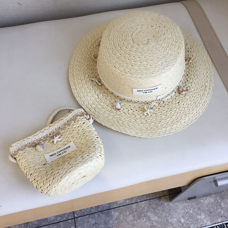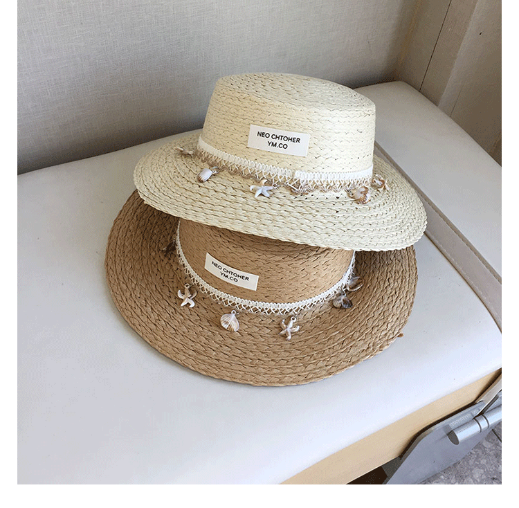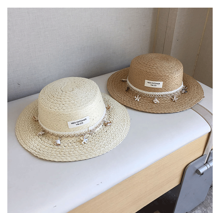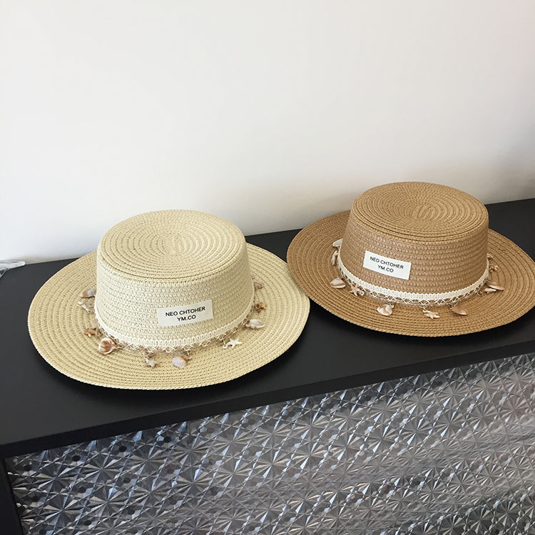 여름 어린이 프렌치 쉘 밀짚 모자 영국 재즈 선 스크린 비치 모자 고급 봄과 여름 햇빛 탑 모자 플랫 탑스토어 가기