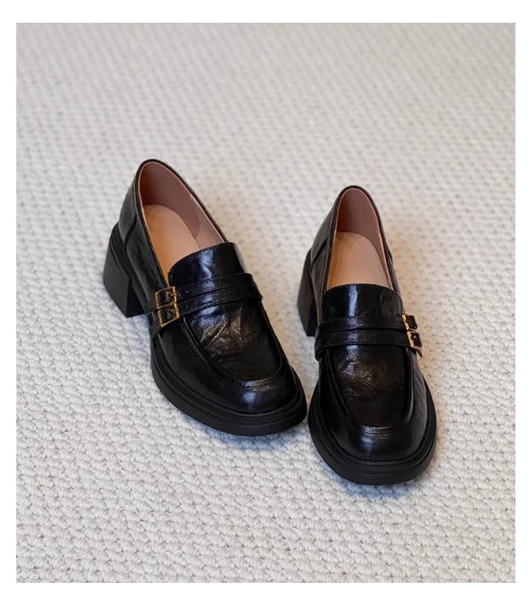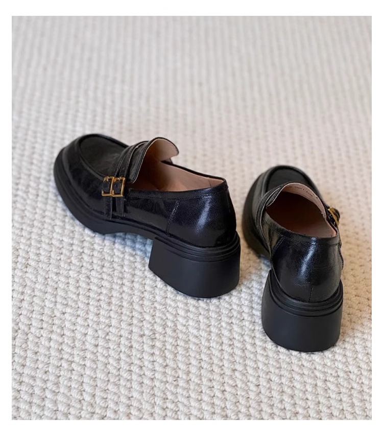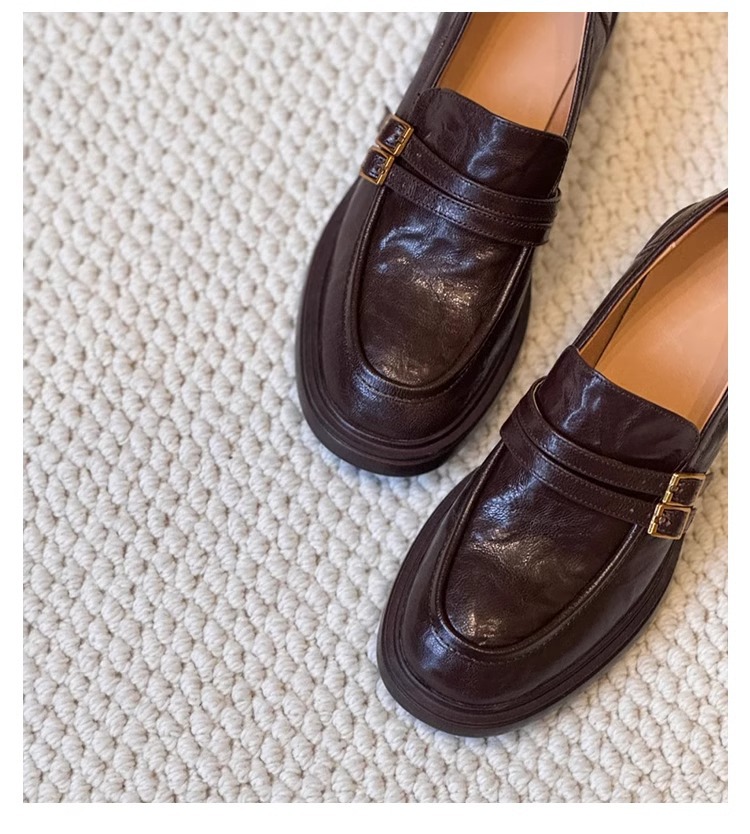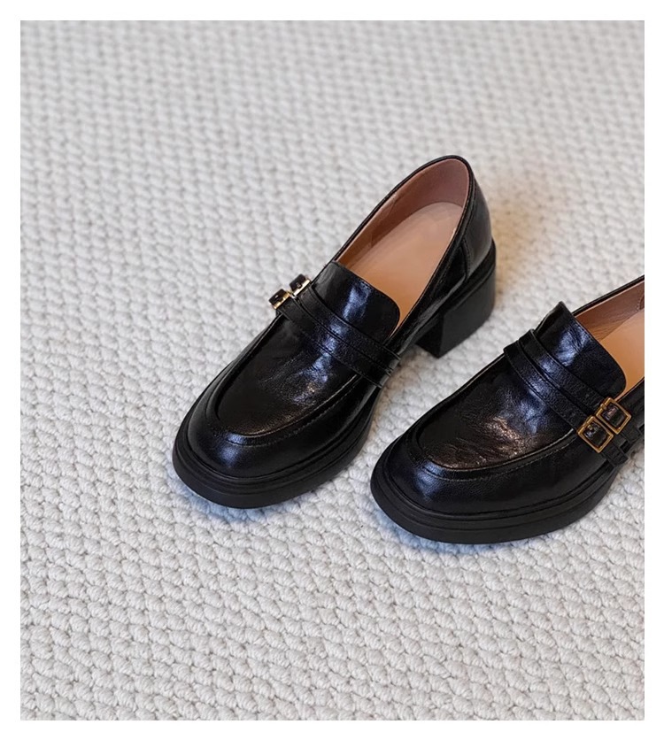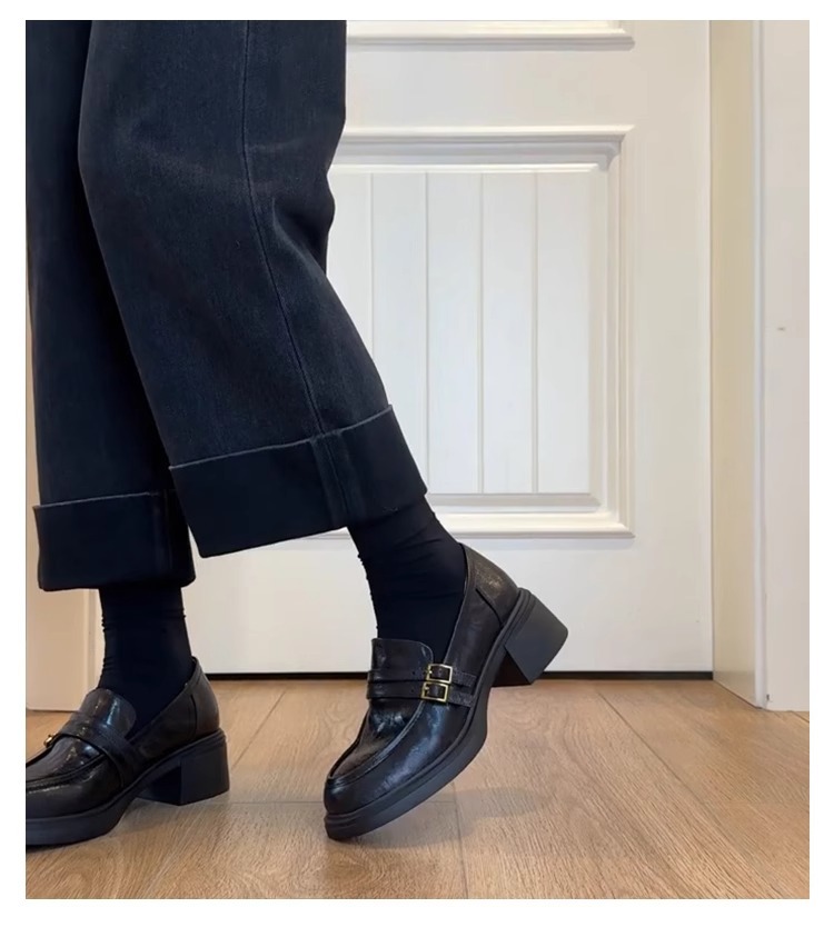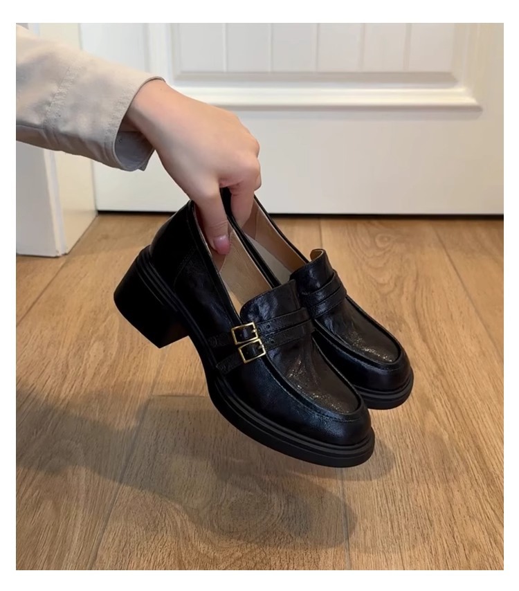 양가죽 버전 ~ 두꺼운 밑창 로퍼 여성의 영국 바람 봄과 가을 새로운 페달 두꺼운 뒤꿈치 신발 복고풍 작은 가죽 신발 여성