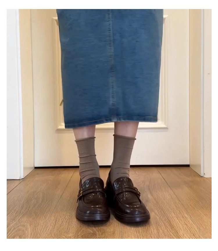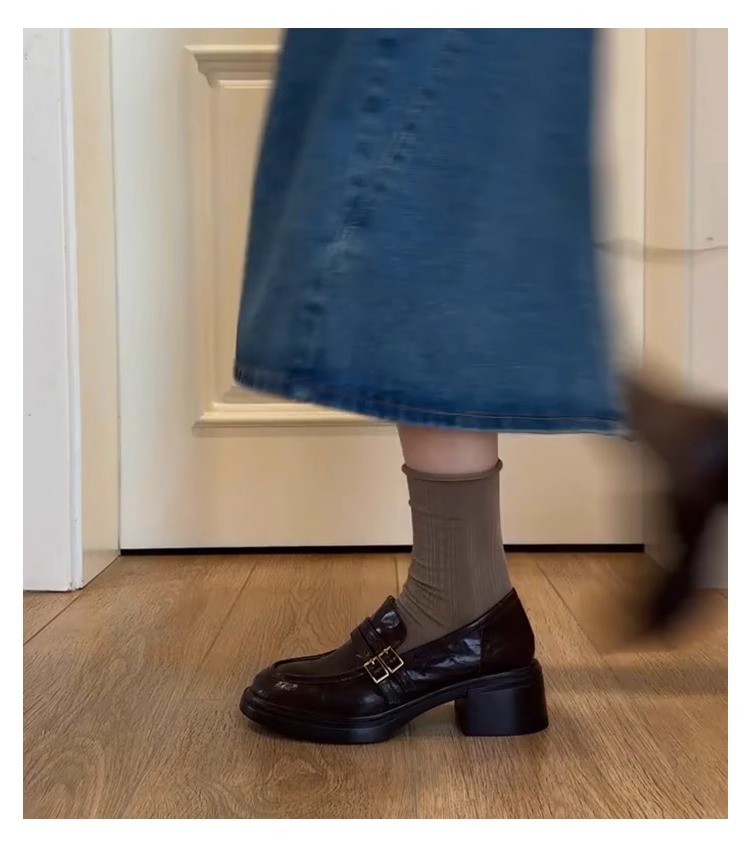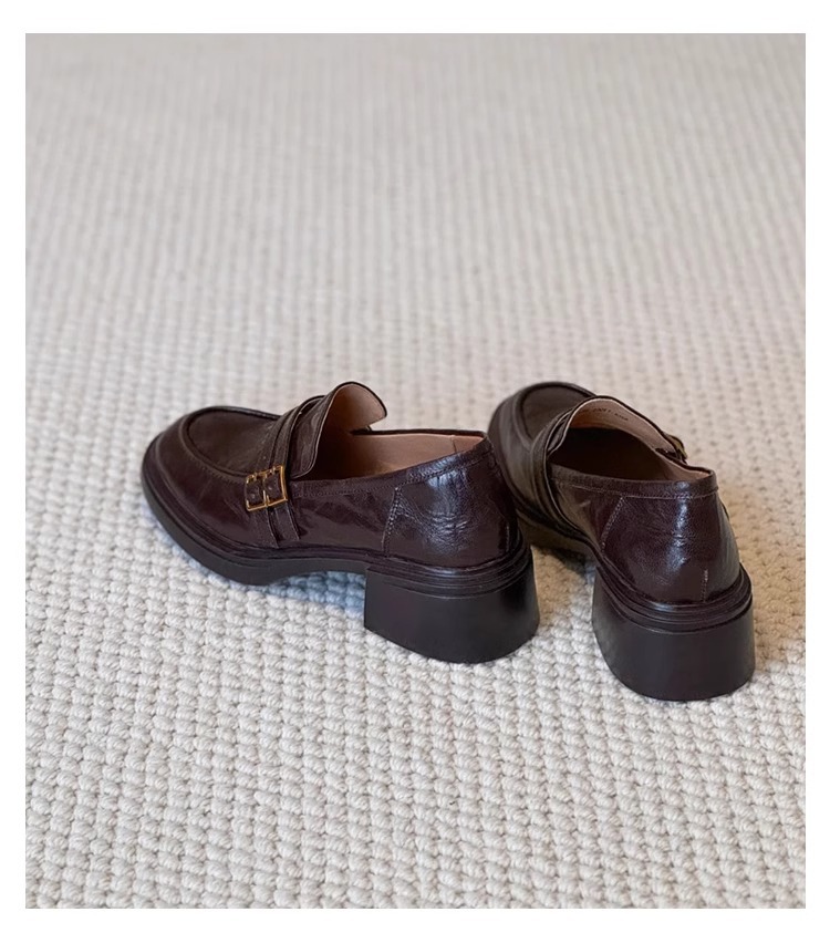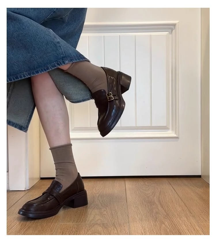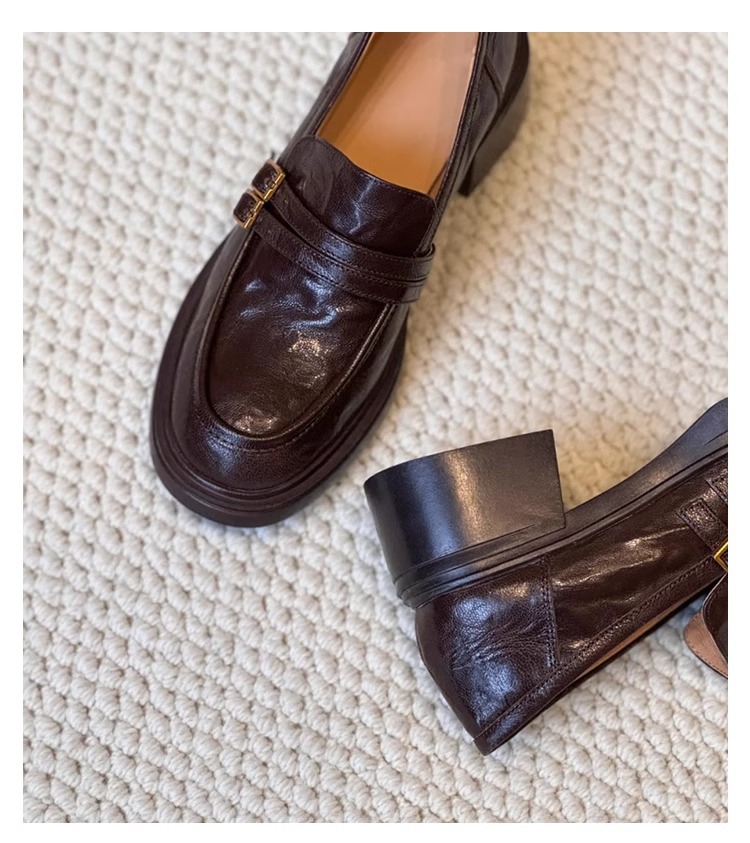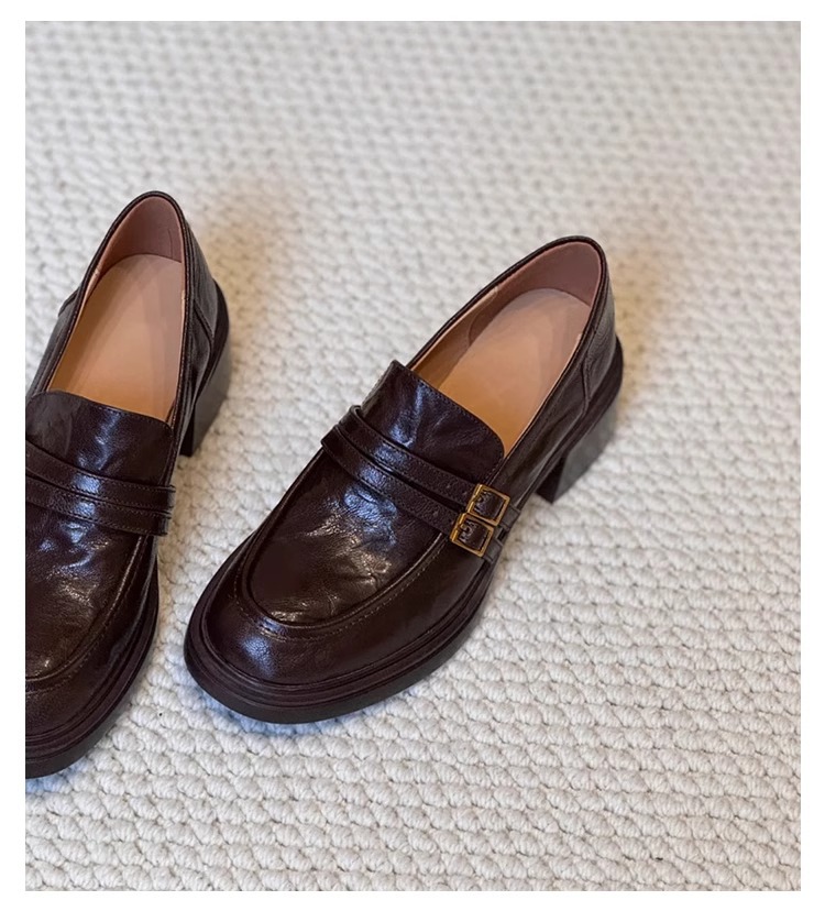 양가죽 버전 ~ 두꺼운 밑창 로퍼 여성의 영국 바람 봄과 가을 새로운 페달 두꺼운 뒤꿈치 신발 복고풍 작은 가죽 신발 여성