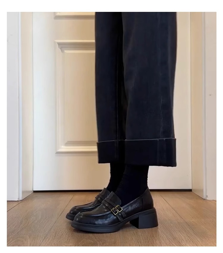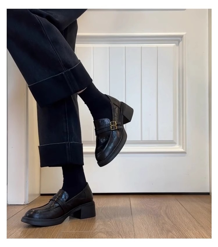 양가죽 버전 ~ 두꺼운 밑창 로퍼 여성의 영국 바람 봄과 가을 새로운 페달 두꺼운 뒤꿈치 신발 복고풍 작은 가죽 신발 여성스토어 가기