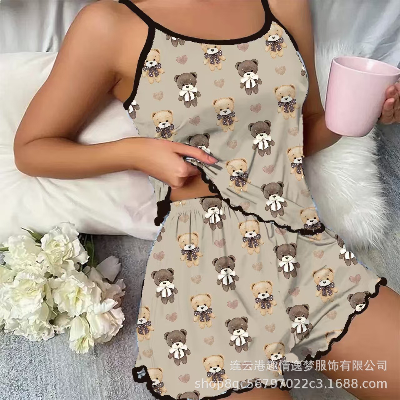 국경 간 유럽과 미국의 여름 유럽과 미국의 캐주얼 섹시 작은 슬링 사랑 인쇄 반바지 여성용 2 피스 홈 의류스토어 가기