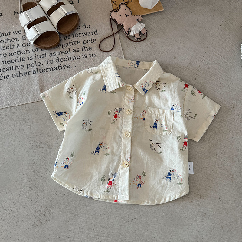 아기 옷 아기 소년의 반팔 셔츠 2025 여름 얇은 아이들의 외출 티셔츠 아기의 여름 옷 카테고리 A스토어 가기