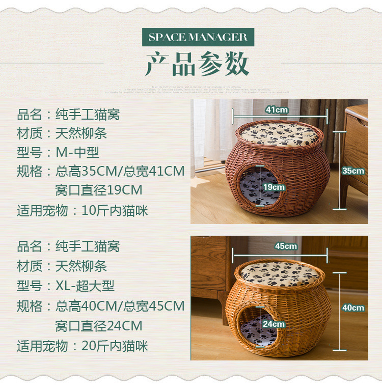 Yut 등나무 고양이 둥지 여름 시원한 개 둥지 버드 나무 고양이 집 고양이 집 빌라 작은 개 둥지 사계절 유니버설