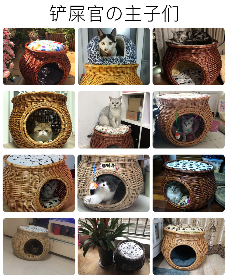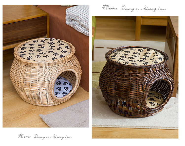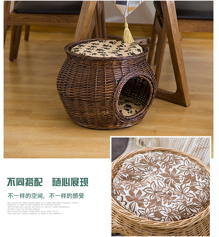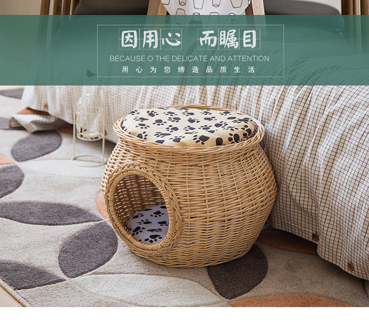 Yut 등나무 고양이 둥지 여름 시원한 개 둥지 버드 나무 고양이 집 고양이 집 빌라 작은 개 둥지 사계절 유니버설스토어 가기