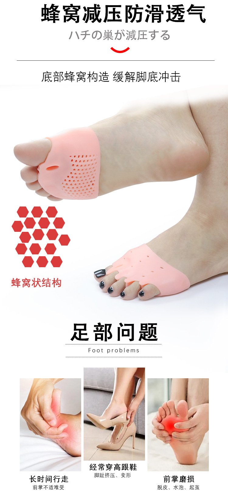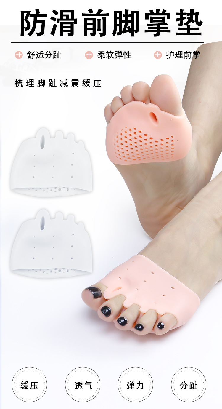 여름용 앞발 패드, 통증 방지 깔창, 통기성 발 보호, 여성용 미끄럼 방지 하이힐, 발 마찰 방지, 다섯 구멍 벌집형 앞발 패드