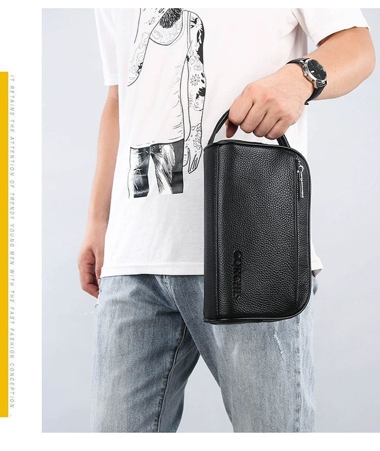 2025 신형 남성용 핸드헬드 천연가죽 롱 대용량 다층 가로형 소가죽 비즈니스 캐주얼 남성용 핸드헬드스토어 가기