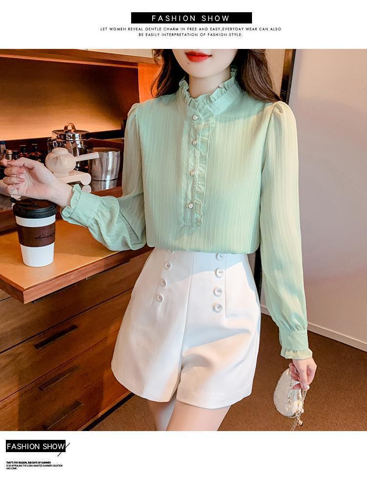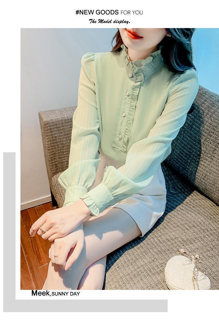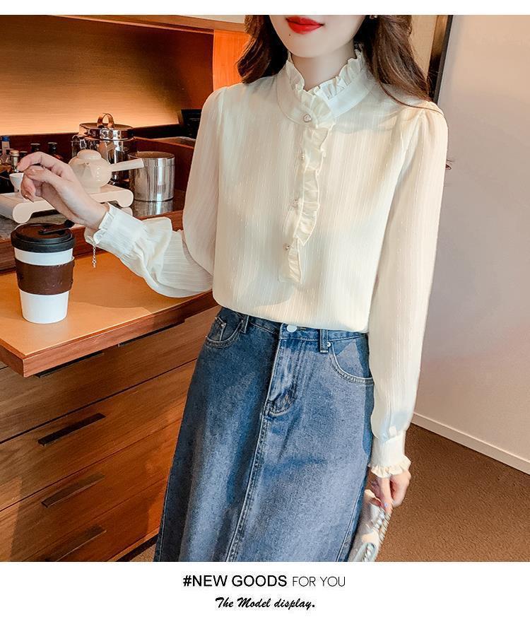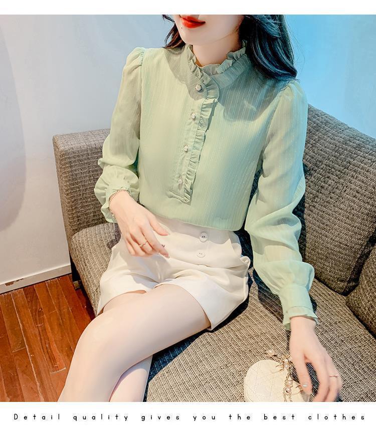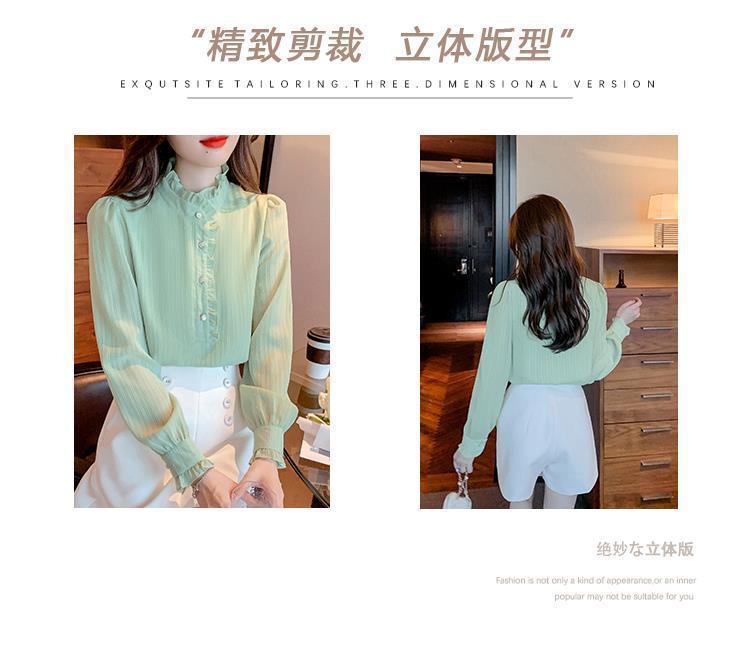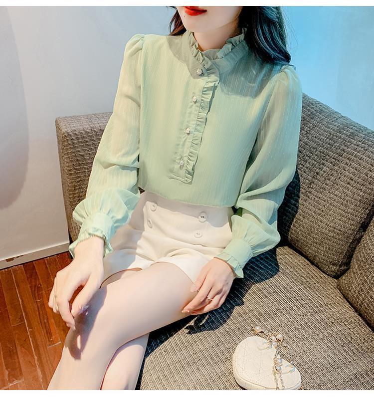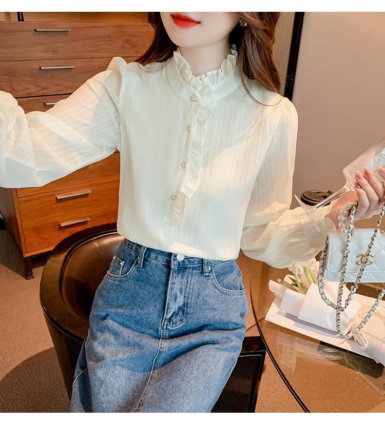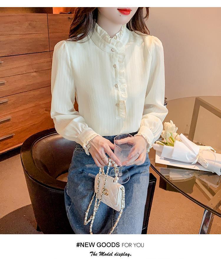 2025 봄 새로운 프랑스 스타일 레이스 쉬폰 셔츠 여성용 패션 칼라 레이스 바느질 긴 소매 우아한 올 매치 탑스토어 가기