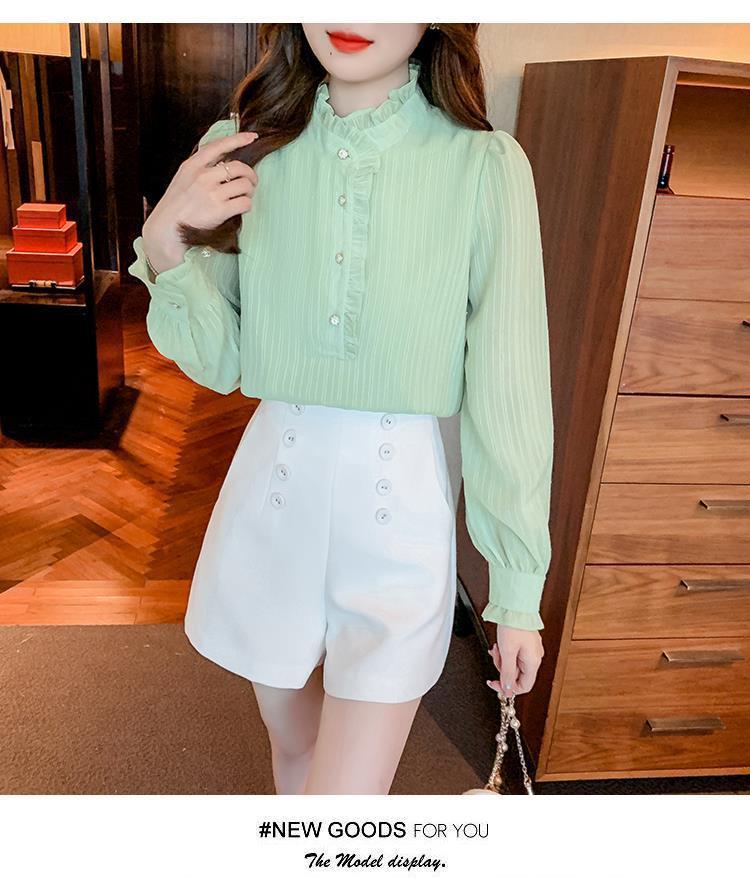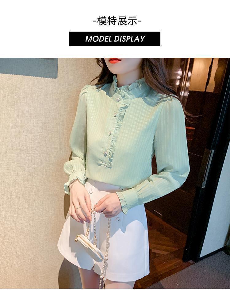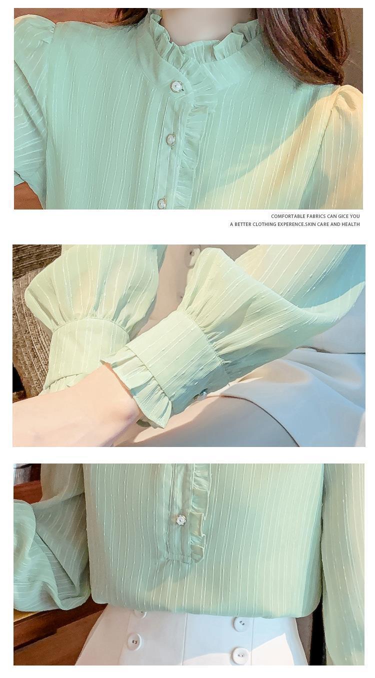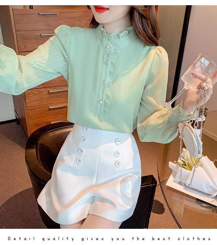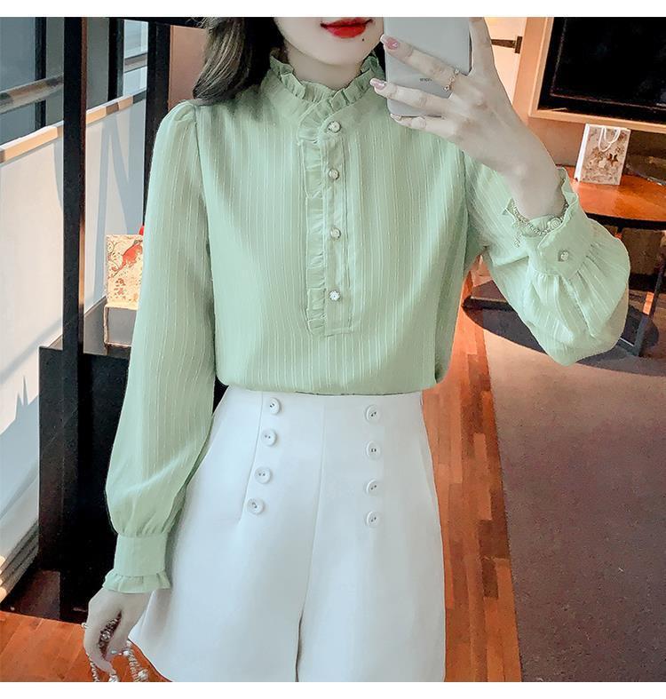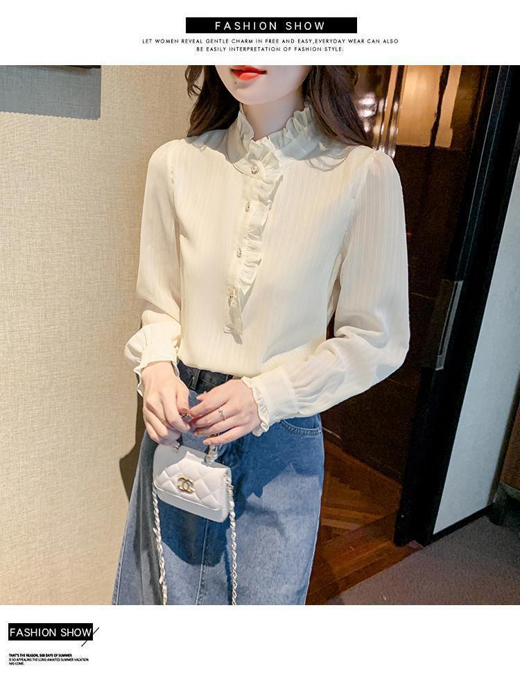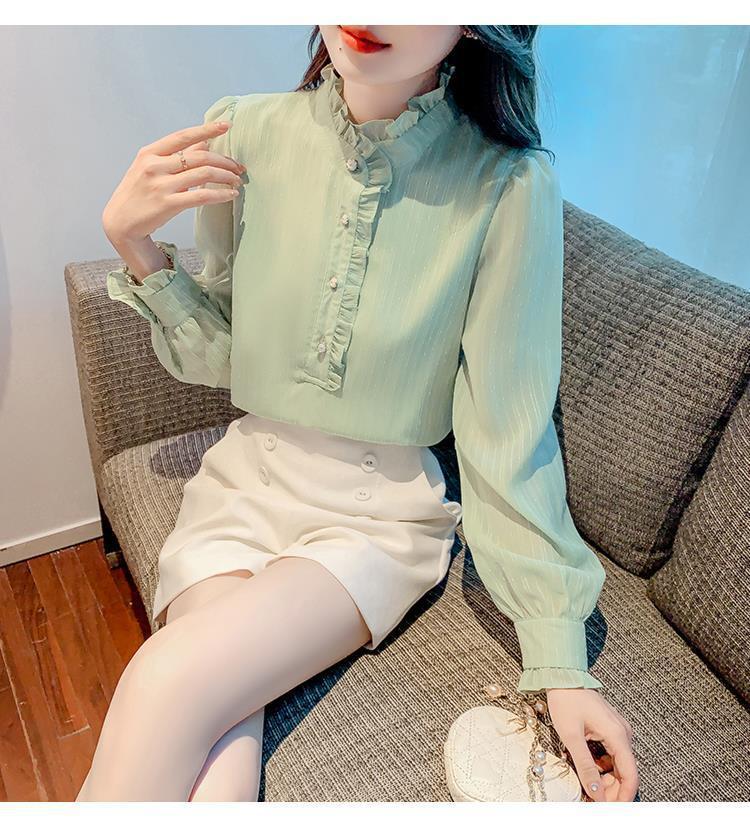 2025 봄 새로운 프랑스 스타일 레이스 쉬폰 셔츠 여성용 패션 칼라 레이스 바느질 긴 소매 우아한 올 매치 탑스토어 가기