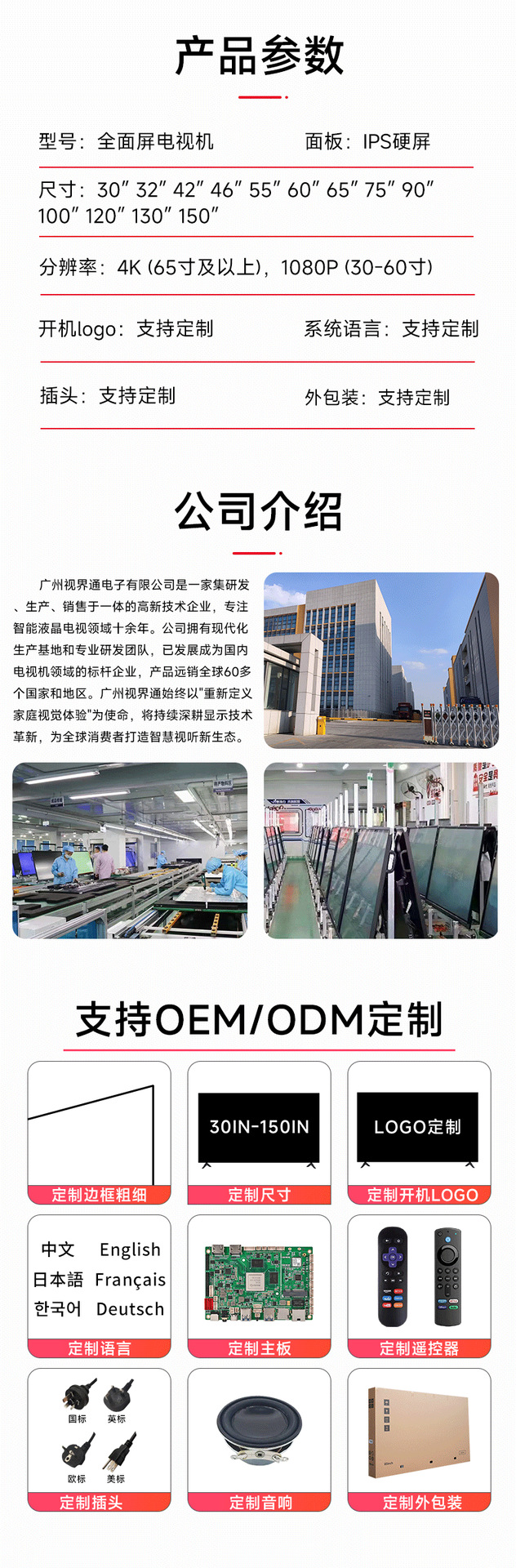 [广州视界通电子有限公司] 是一家专注于液晶显示终端研发、制造与全球供应的企业,总部位于[广州番禺区],拥有现代化生产基地、全流程自动化产线及完善的质量管控体系。公司深耕液晶电视领域多年,核心聚焦于工程类批量订单与跨境业务,产品远销欧洲、北美、东南亚、中东、拉美等80多个国家和地区。