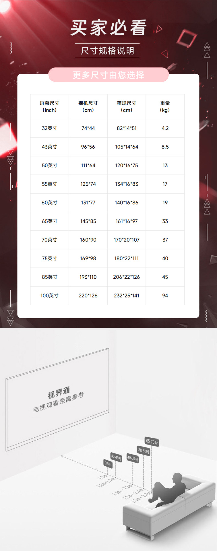 全尺寸商用/家用液晶电视/电视(32"–100"+)