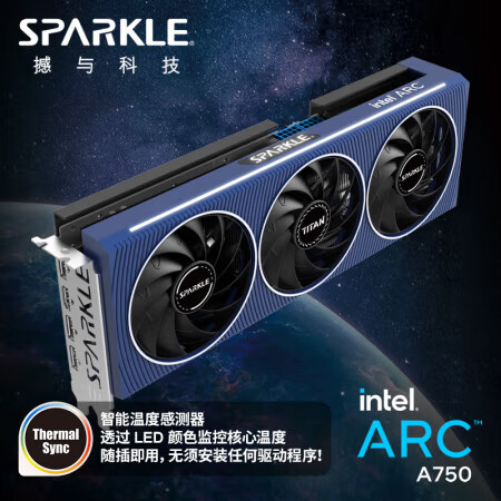 인텔 아크 A750 TITAN OC 타이탄 시리즈 게임 그래픽 오버 클럭킹 듀얼 슬롯 3 팬