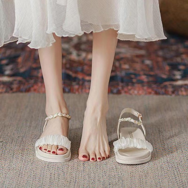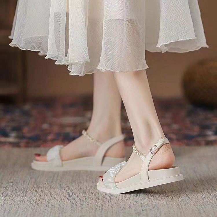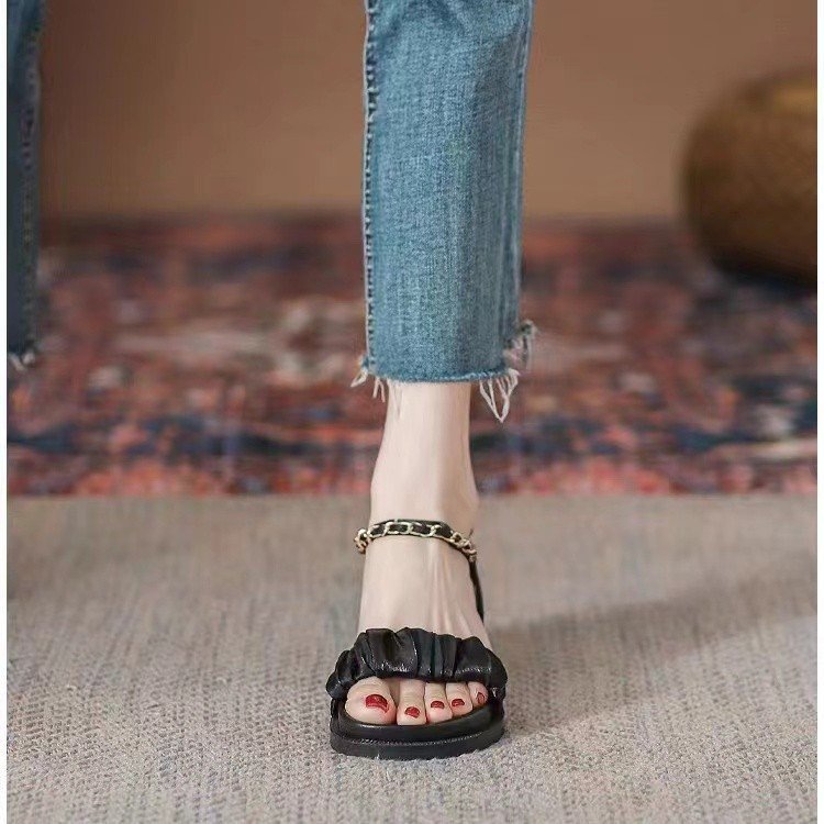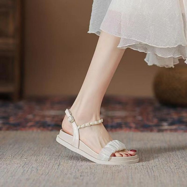 샌들 여성 여름 2025 새로운 스타일 플랫 바닥 올 매치 페어리 스타일 두꺼운 바닥 플랫폼 사이버 축하 로마 신발스토어 가기