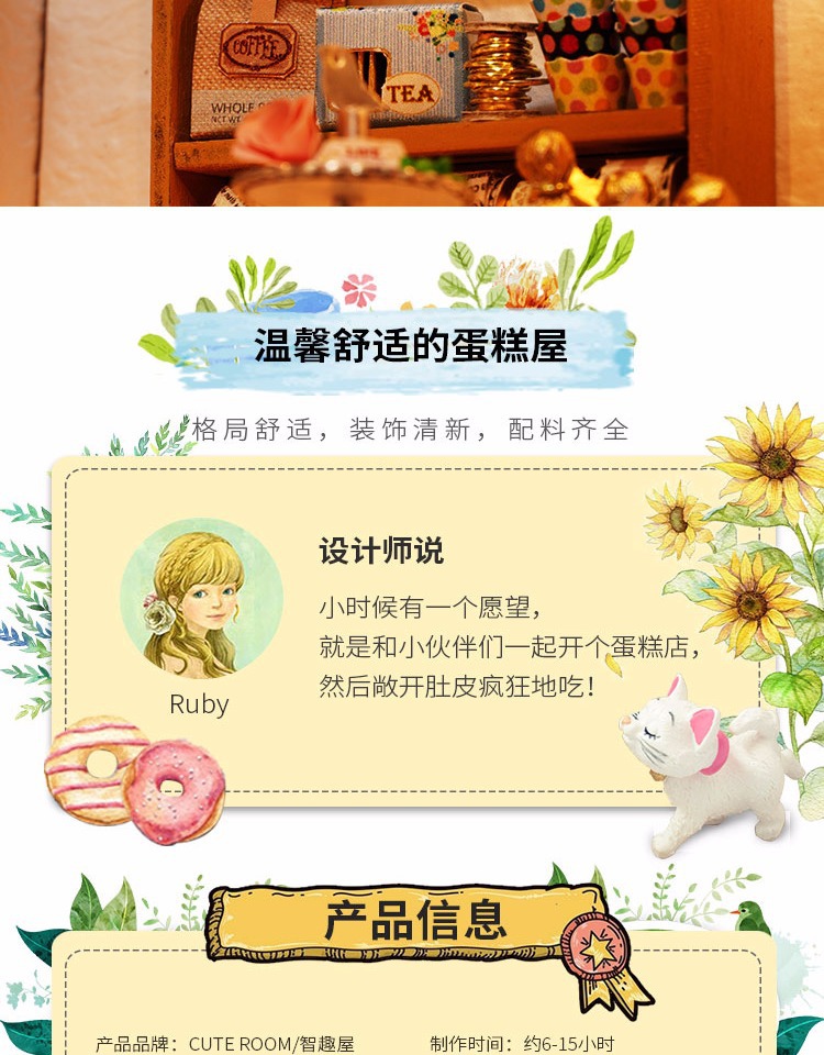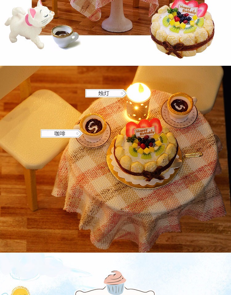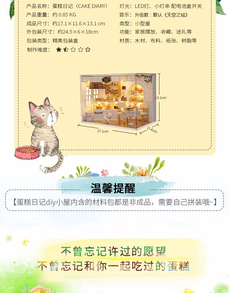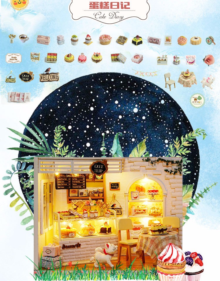 • 케이크 하우스 + 도구 + 램프 + 먼지 커버 + 음악
