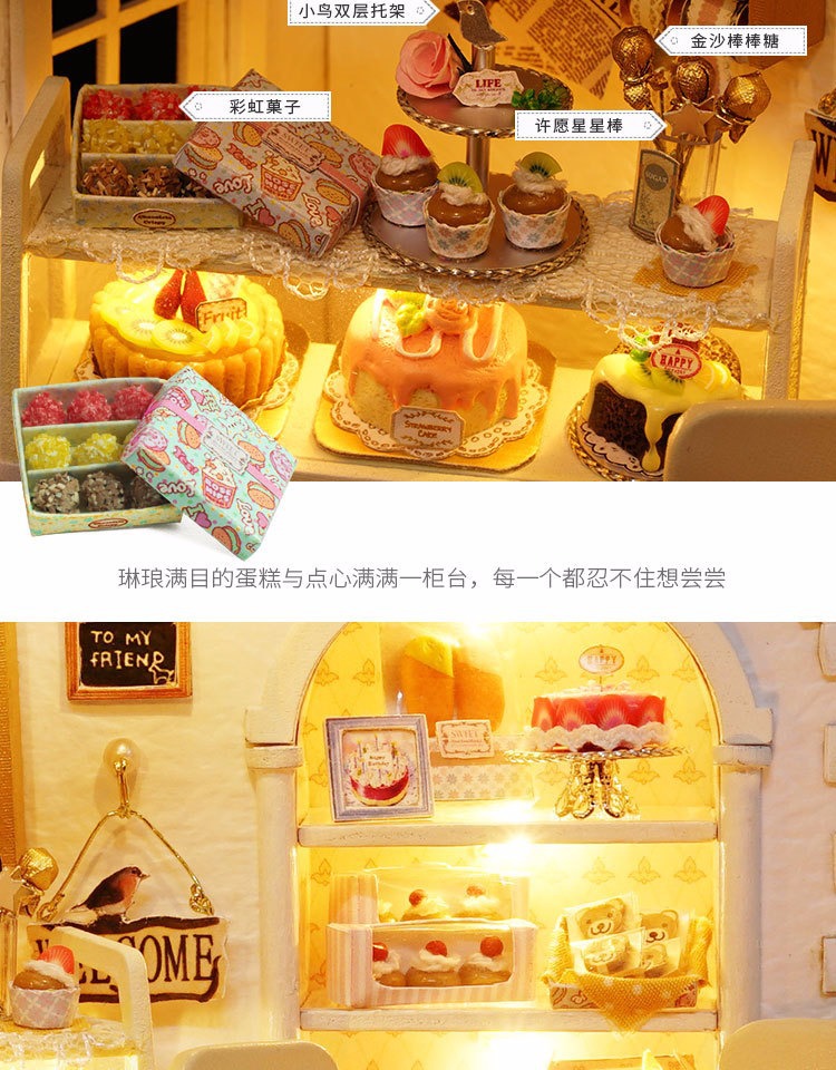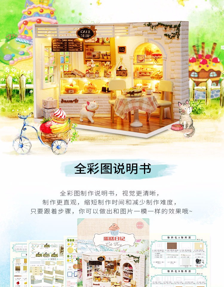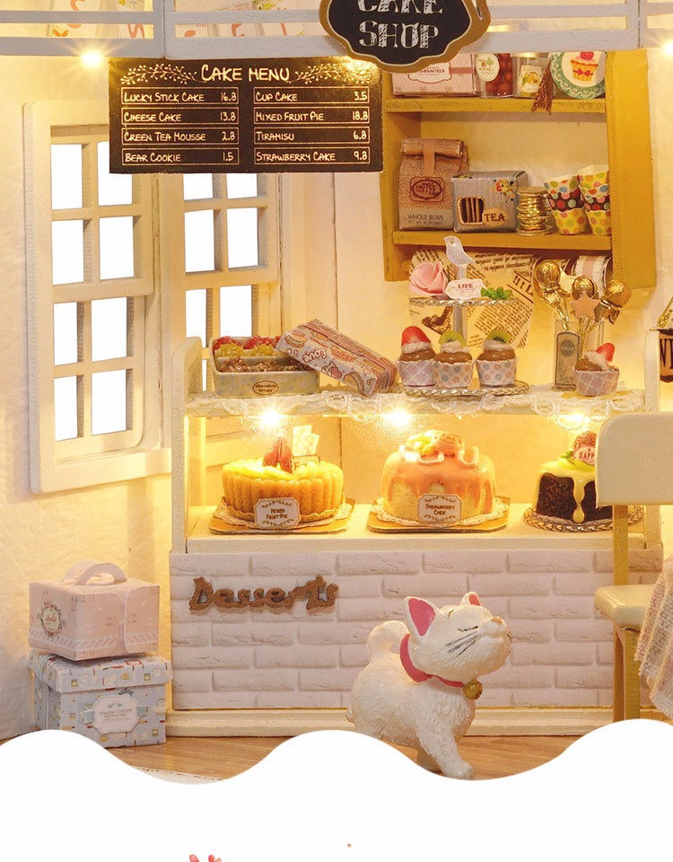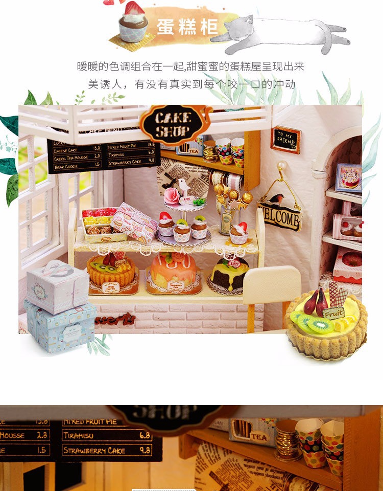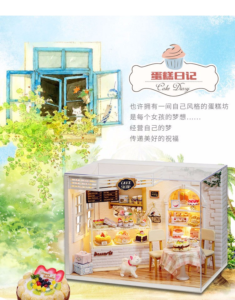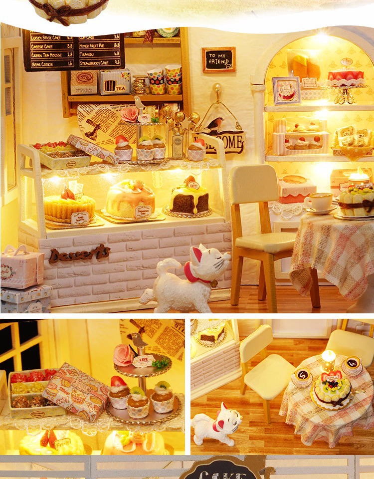 케이크 가게 DIY 캐빈 빵 밀크티 디저트 가게 모델 미니 하우스 장난감 집 손으로 조립한 작은 가게