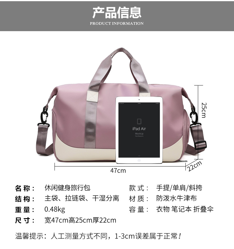 대용량 단거리 여행 가방 독립적 인 신발 창고 건조하고 젖은 분리 체육관 가방은 풀로드 수하물 가방으로 설정할 수 있습니다 로고 인쇄