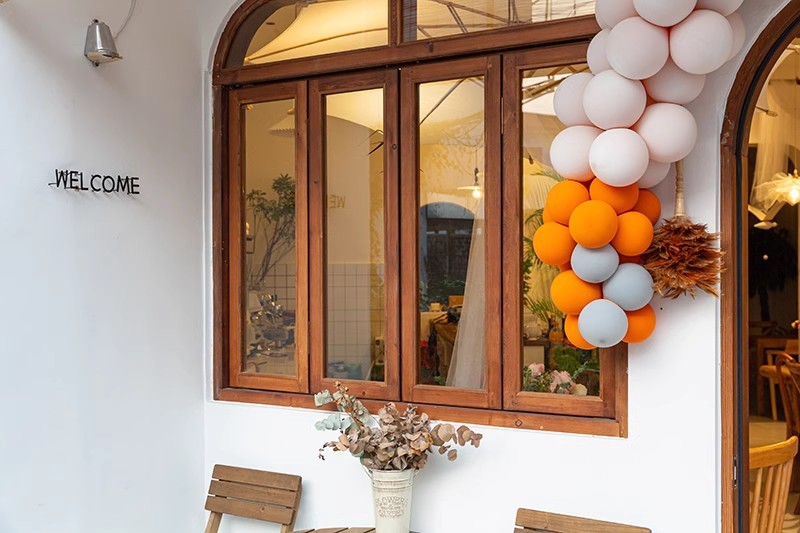 빈티지 발코니 레저 스타일 단단한 나무 문 오버레이 커피 숍 정원 안뜰 플랫 도어 스위트 샵 홈스테이 룸 반대 문스토어 가기