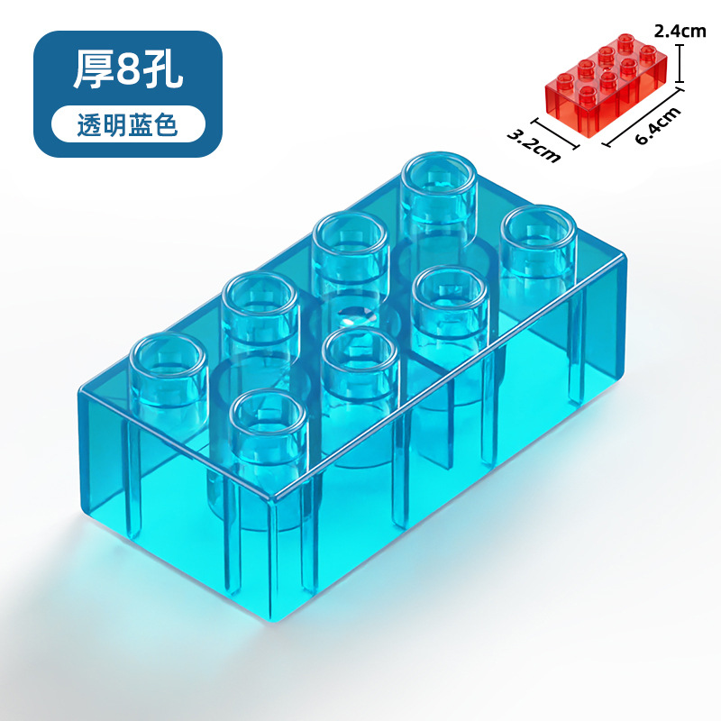 큰 입자 빌딩 블록 빛나는 투명 파란색과 보라색 2x4 두꺼운 8 홀 빌딩 블록 교육 보조 장식 부품 해양
