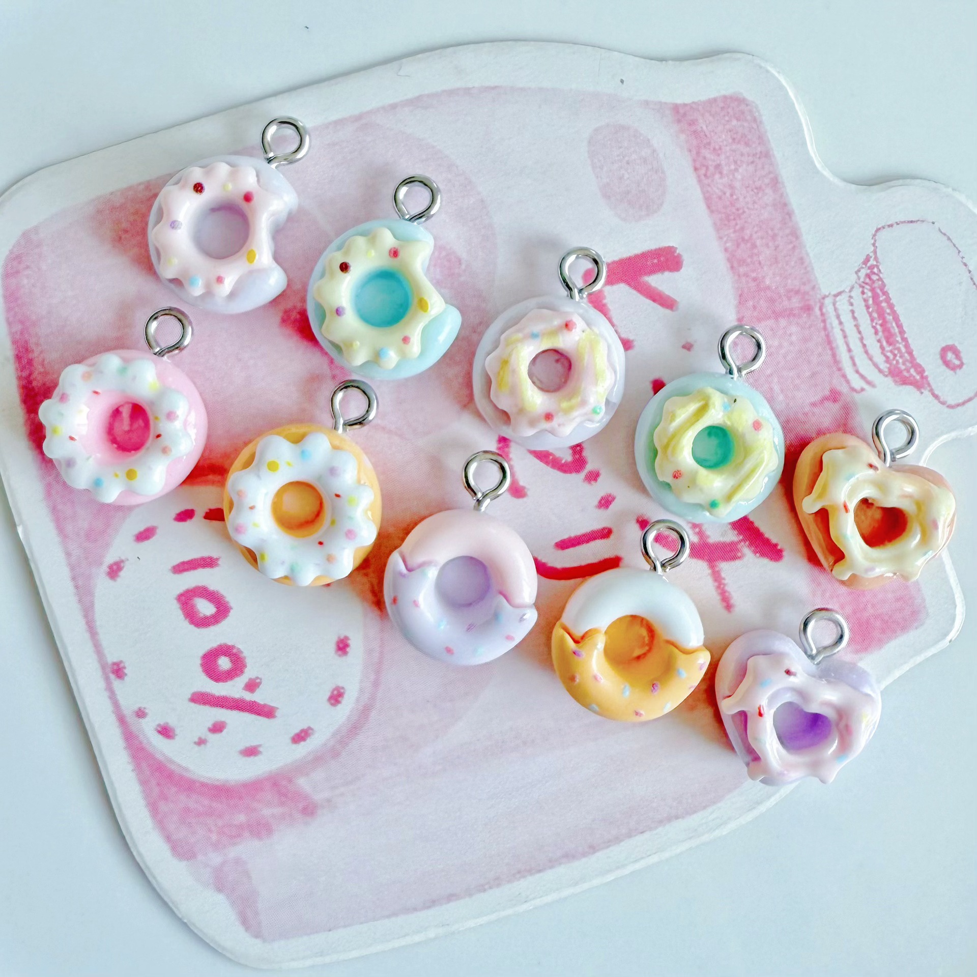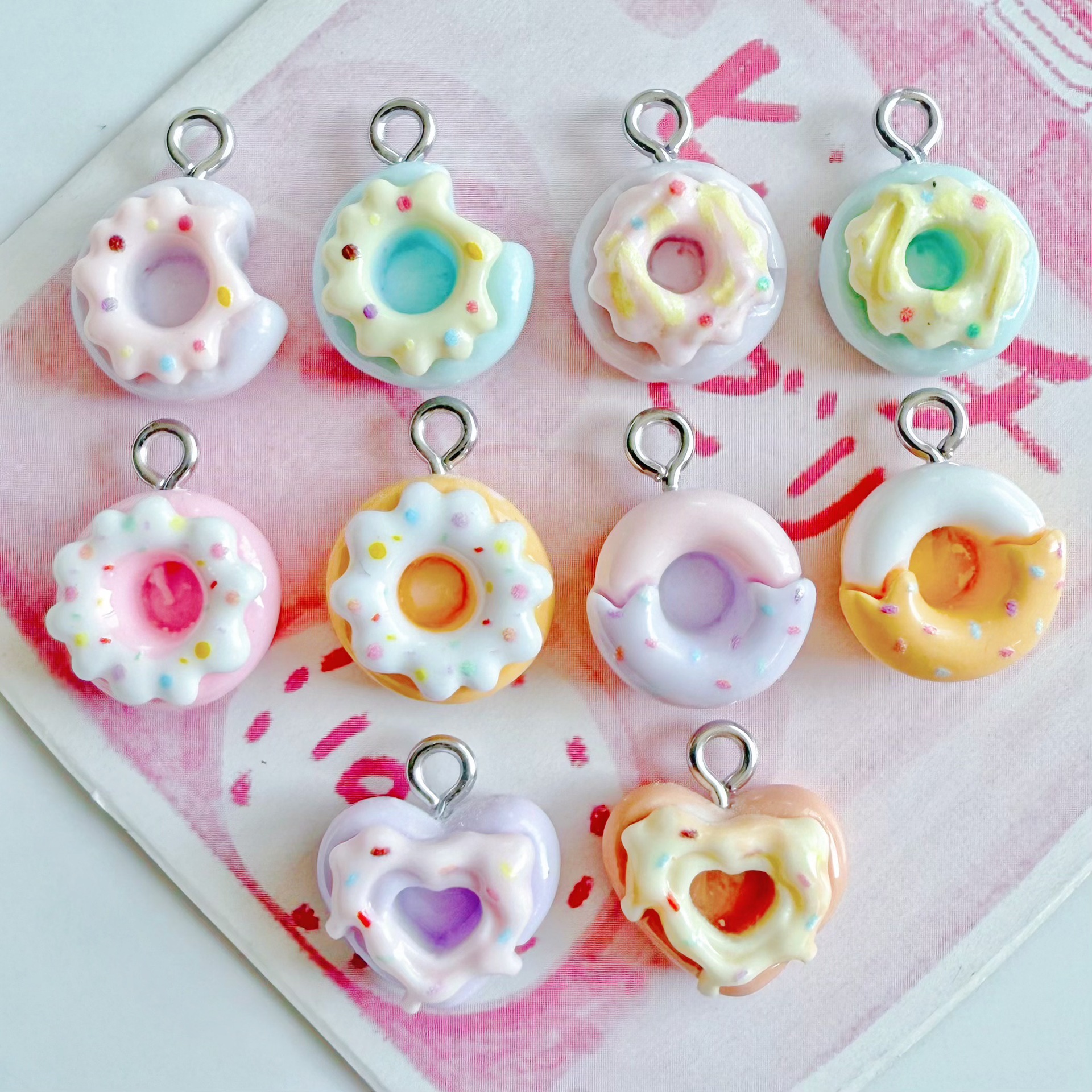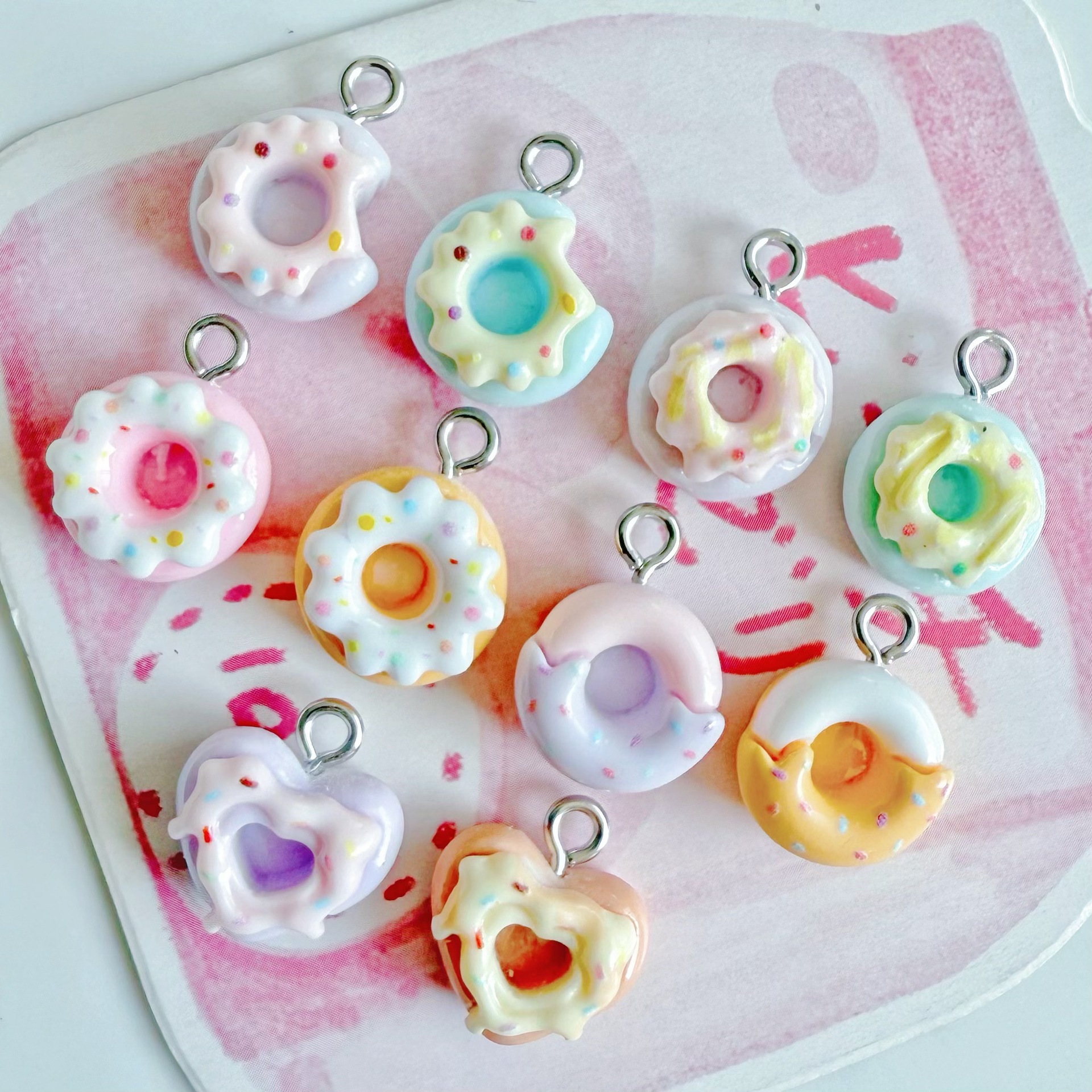 미니 시뮬레이션 도넛 손톱 수제 DIY 수지 액세서리 팔찌 목걸이 펜던트 펜던트 키 체인 보석
