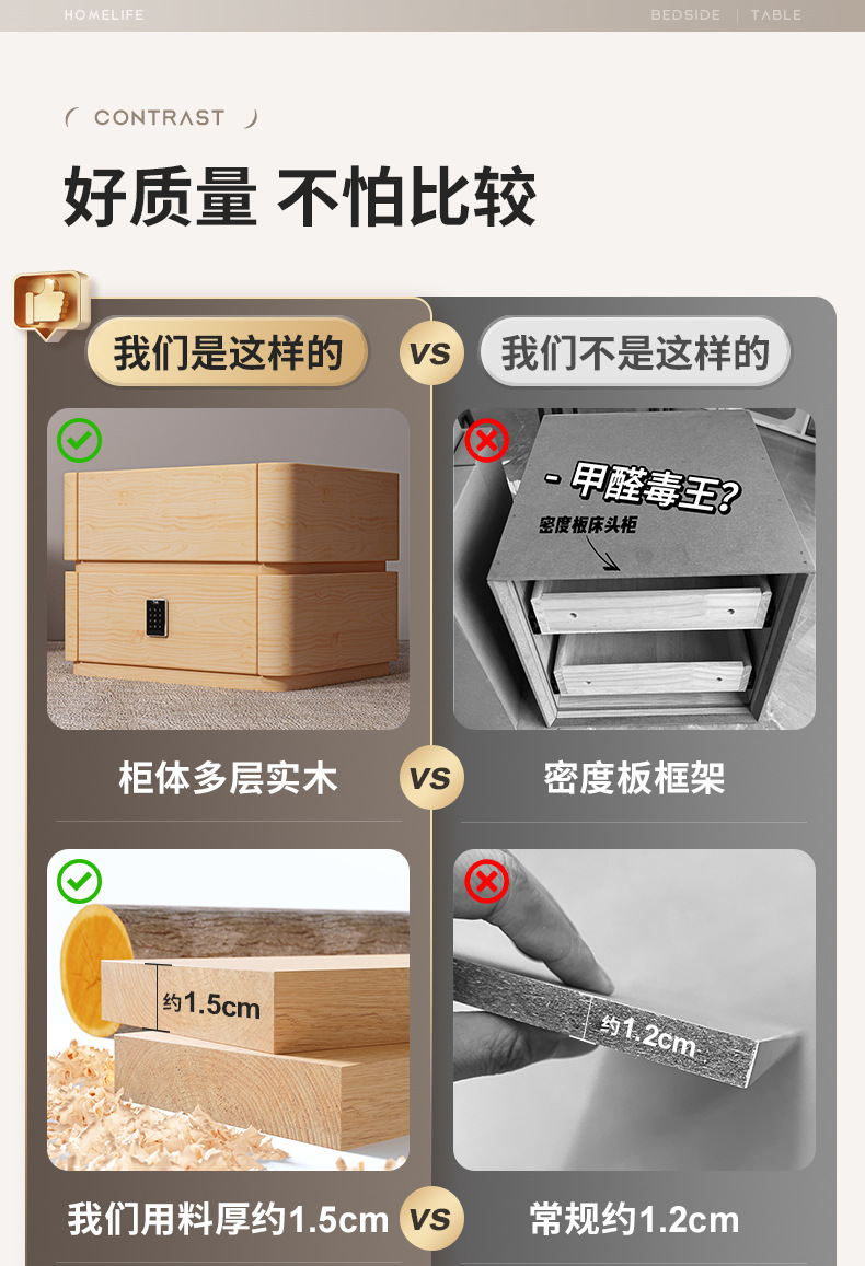 实木床头柜密码锁保险箱轻奢高级感2025爆款家用卧室床边柜收纳柜
