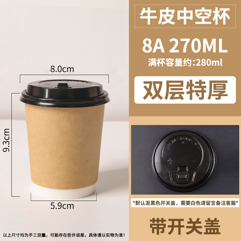 • 270ml 이중 종이컵 - 검정색 U자형 누수 방지 뚜껑 포함