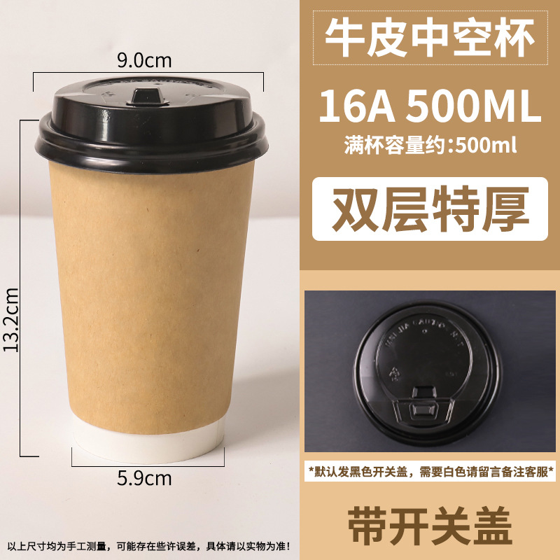 • 500ml 이중층 종이컵 - 검정색 U자형 누수 방지 뚜껑 포함