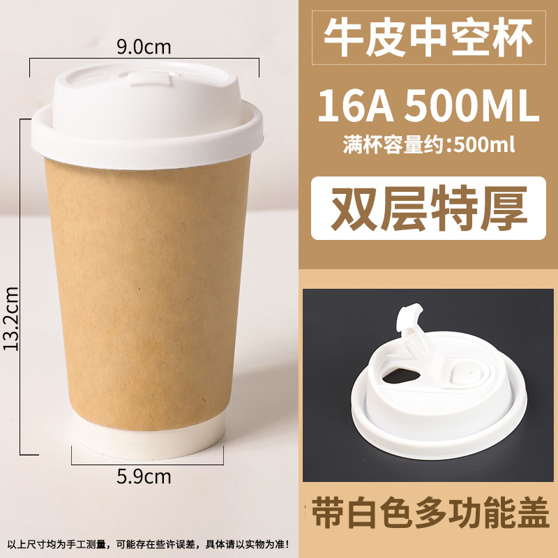 • 500ml 이중층 종이컵 - 흰색 스위치 뚜껑 포함