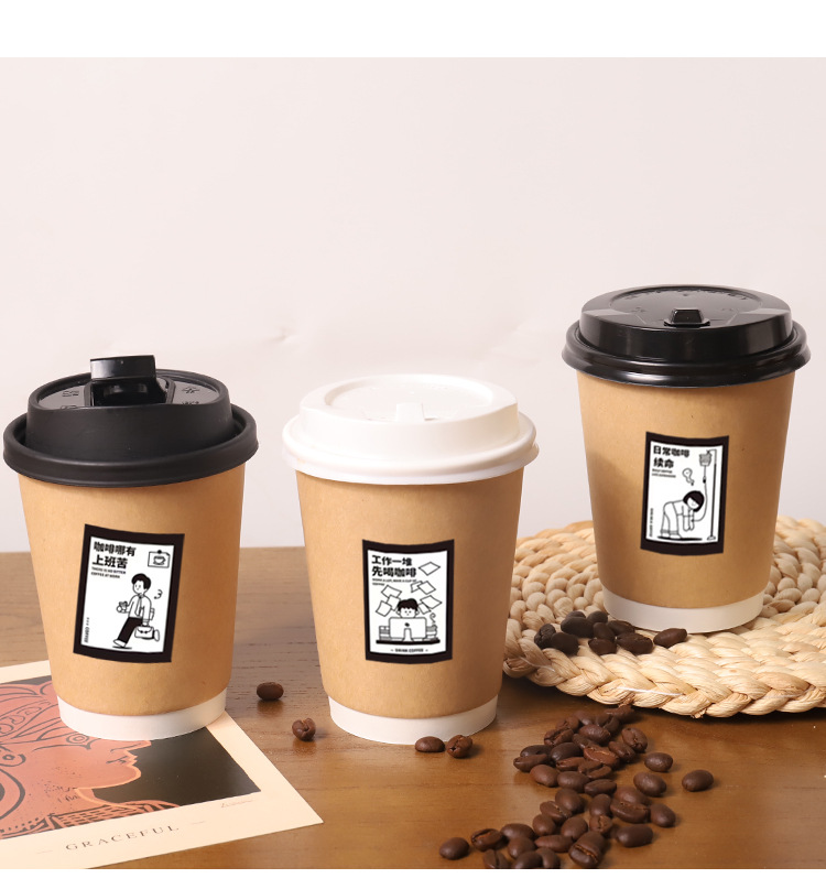 이중층 커피컵 일회용 종이컵 도매 두유 밀크티 두꺼운 크라프트지 뚜껑 포함 재고 종이컵스토어 가기