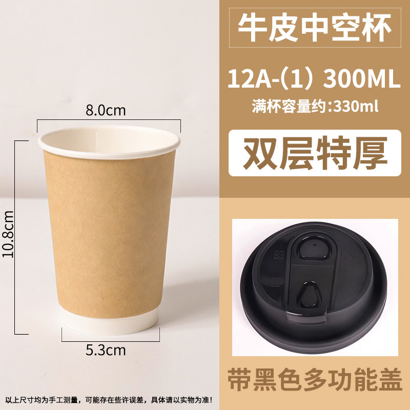 • 300ml 이중 종이컵 - 검정색 U자형 누수 방지 뚜껑 포함