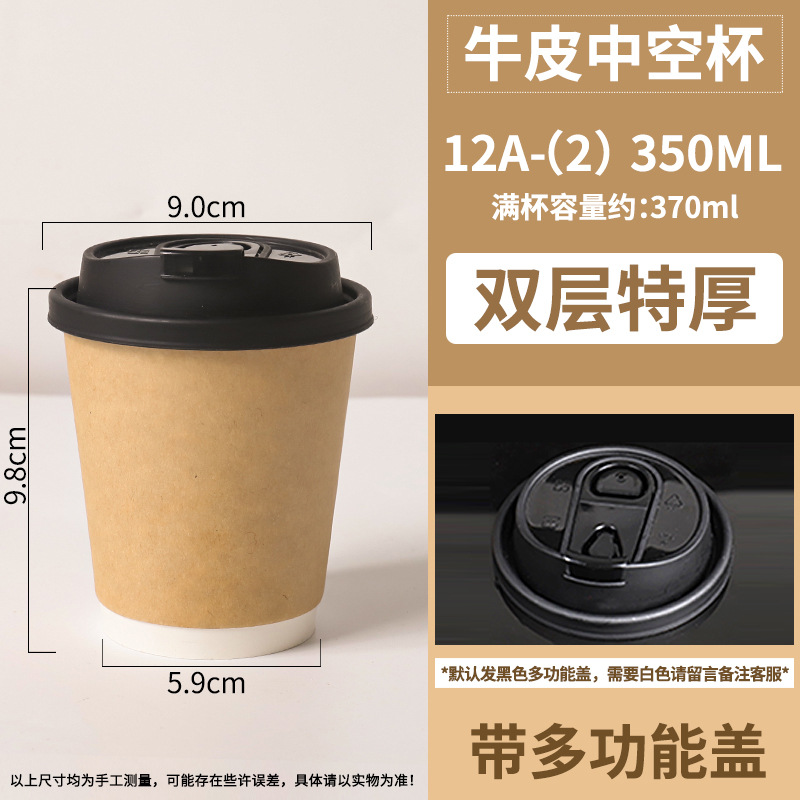 • 365ml 이중층 종이컵 - 검정색 U자형 누수 방지 뚜껑 포함