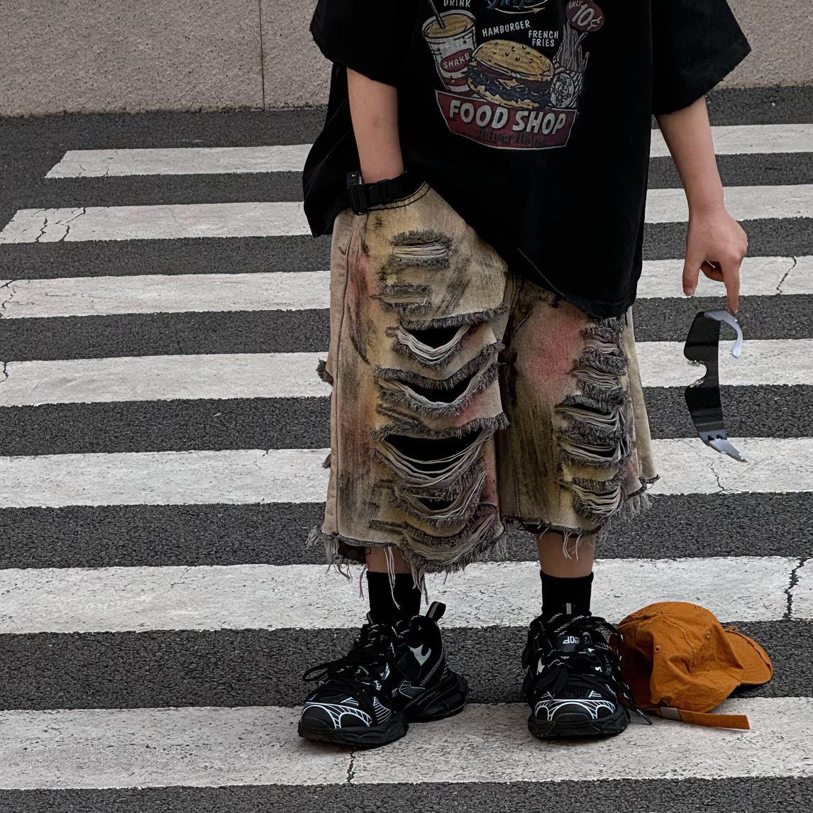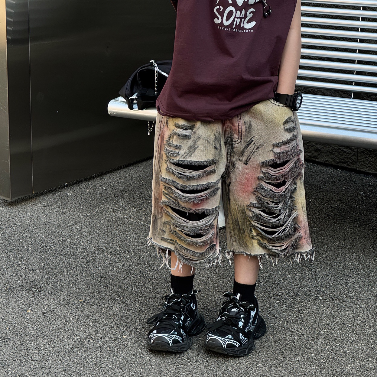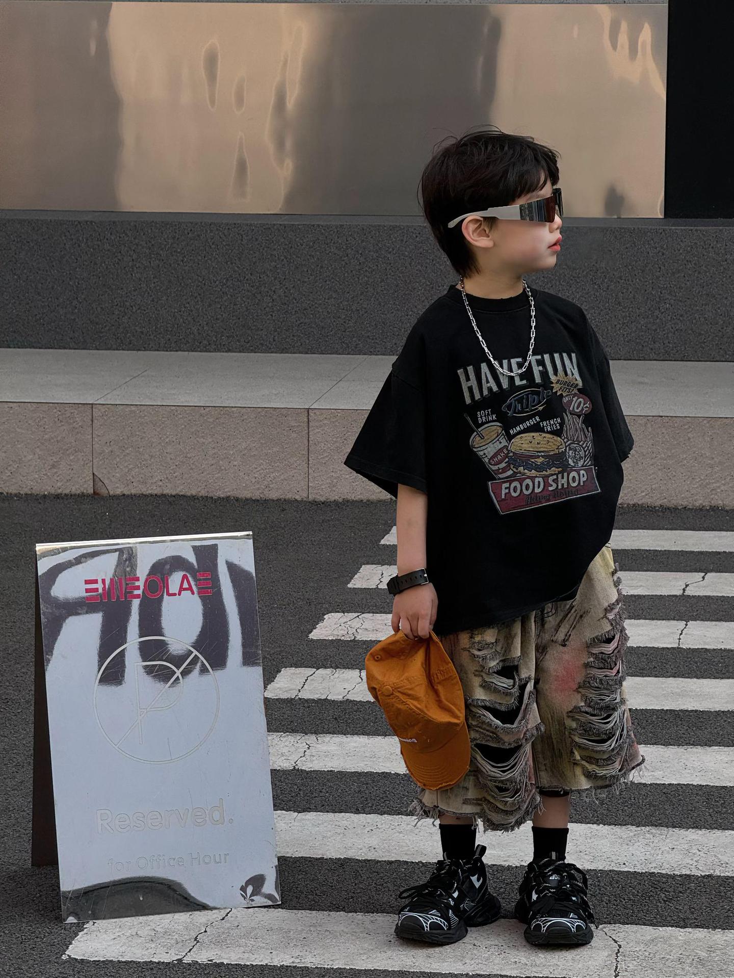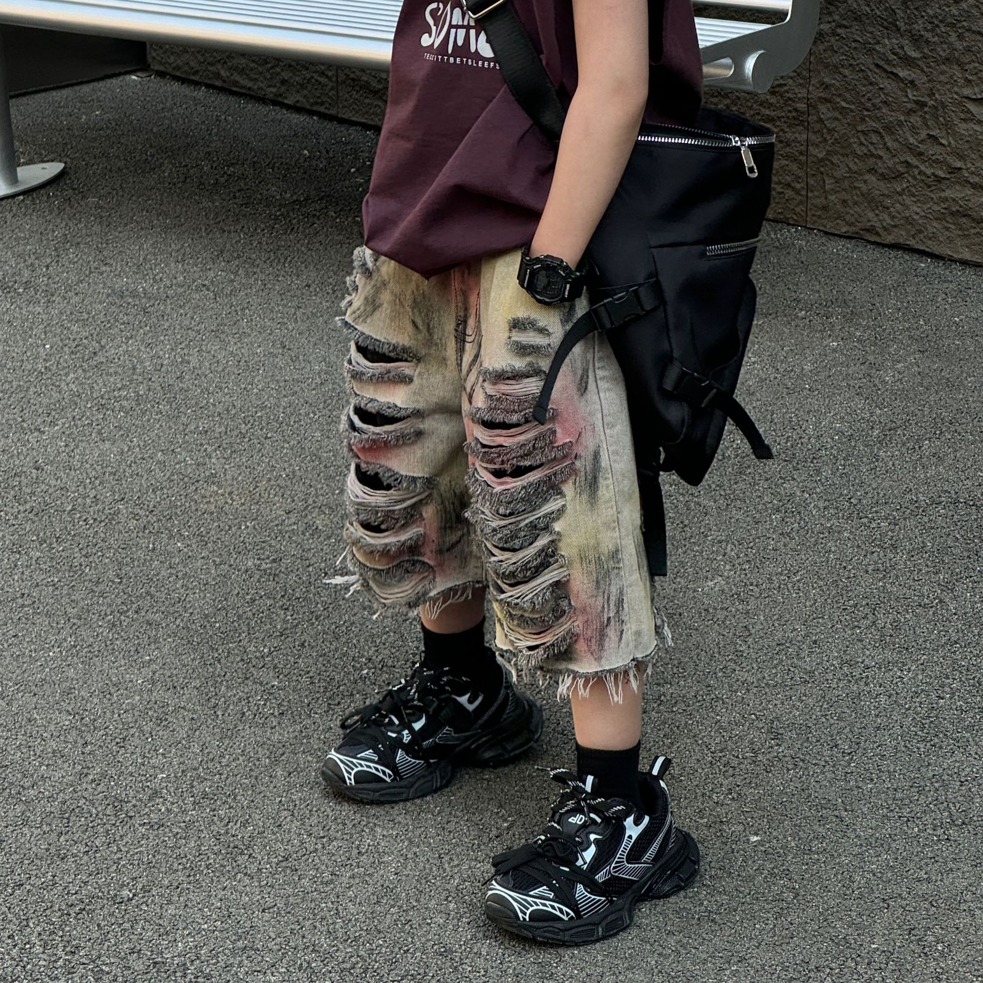 타이루 2025 여름 새 도착 한국식 소년 올매치 디자인 센스 스트리트 아메리칸 리핑 청바지 어린이 반바지스토어 가기