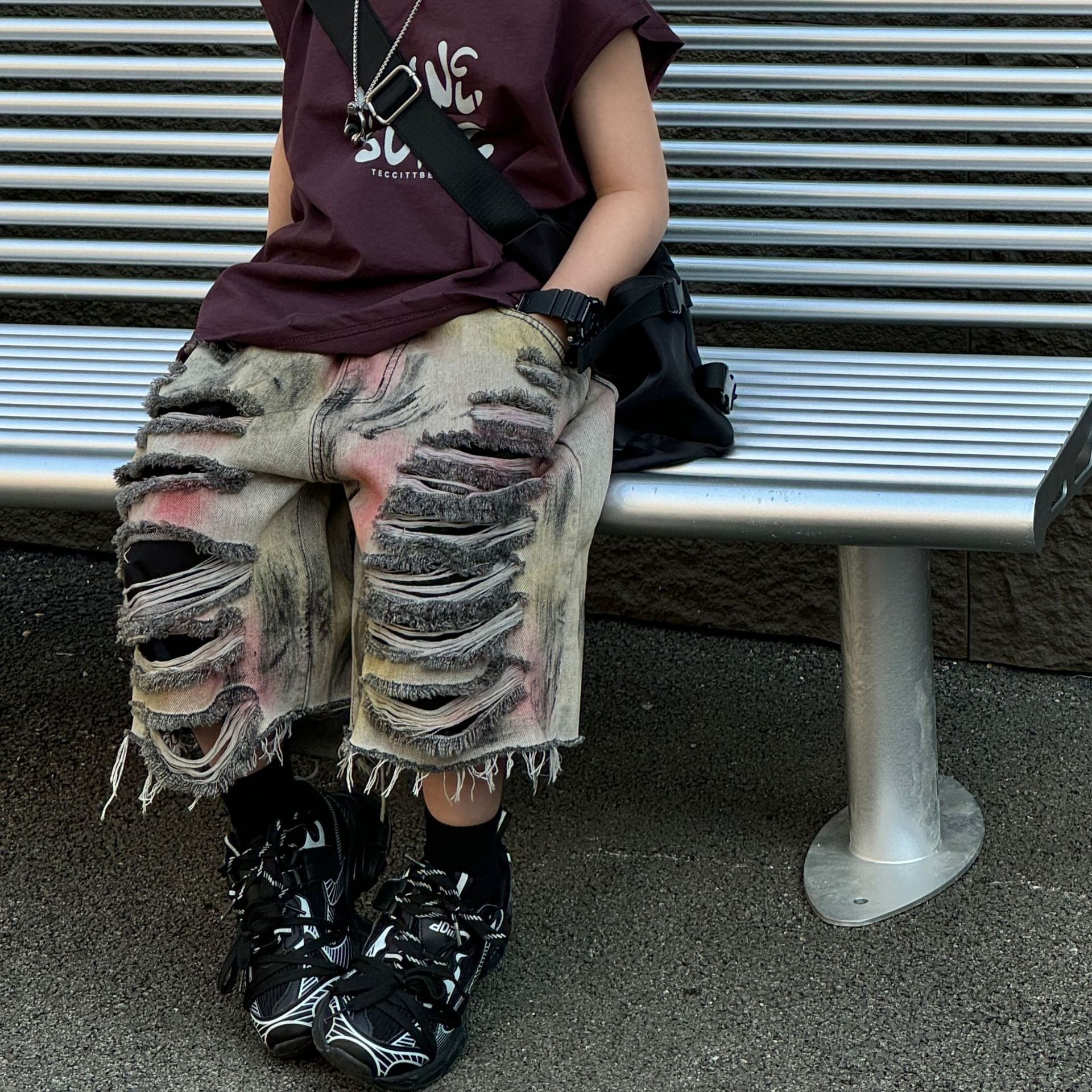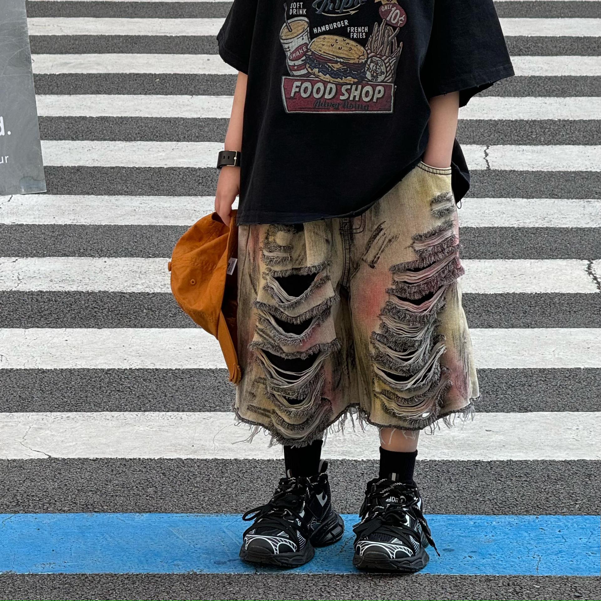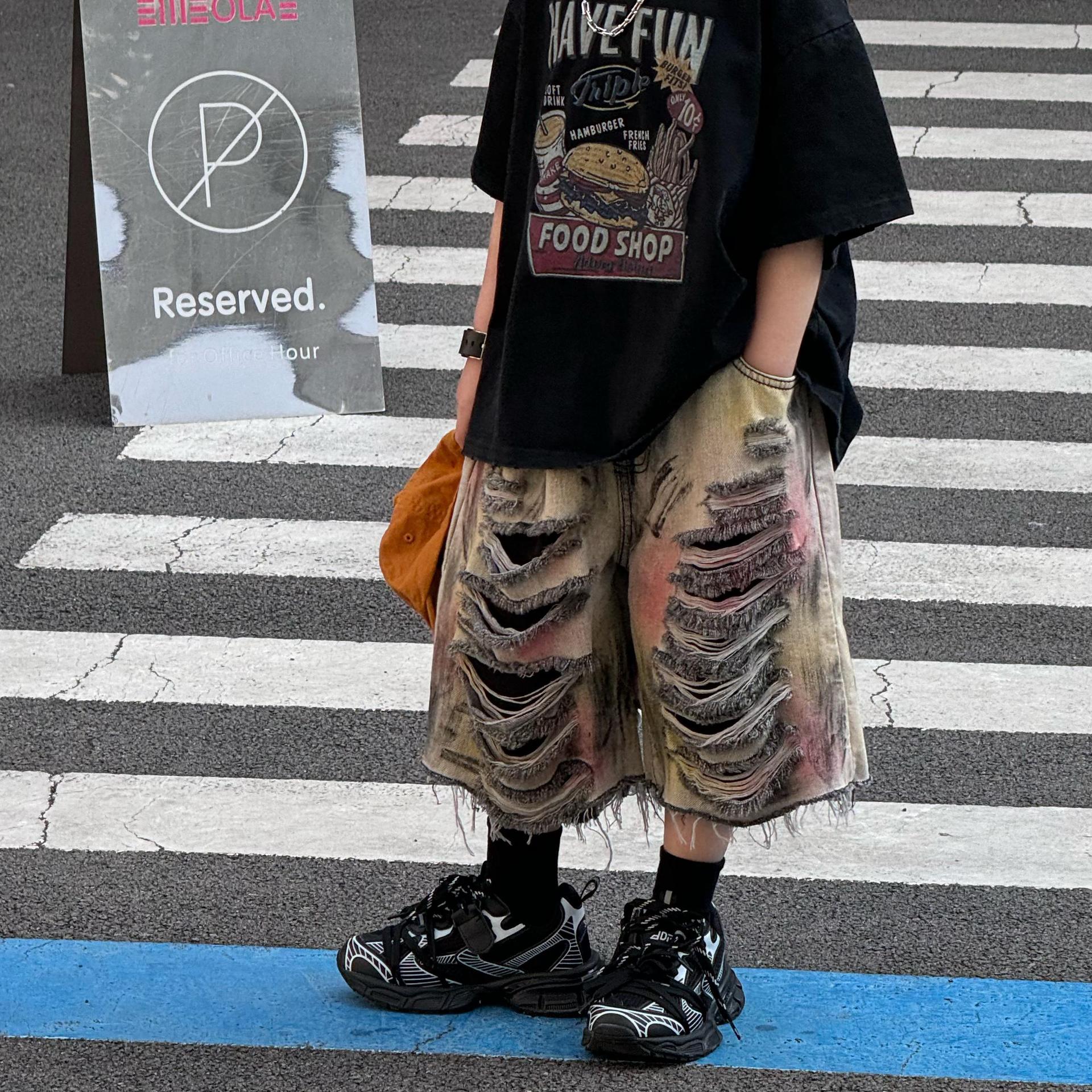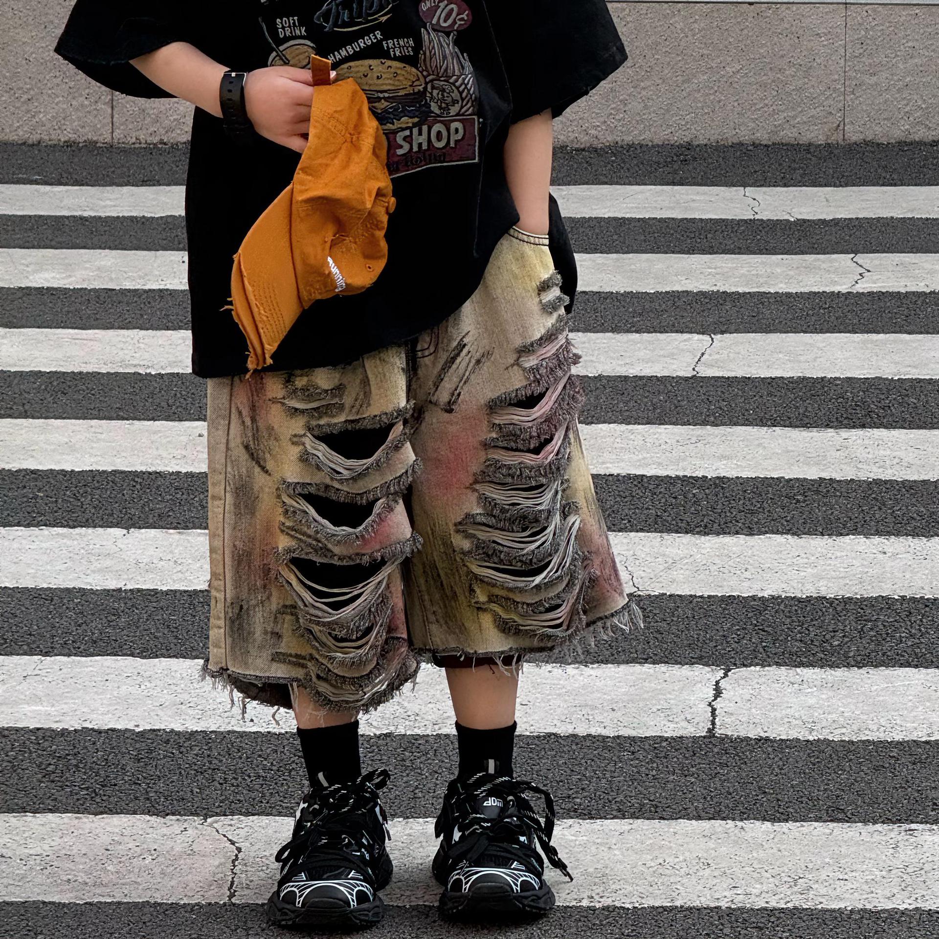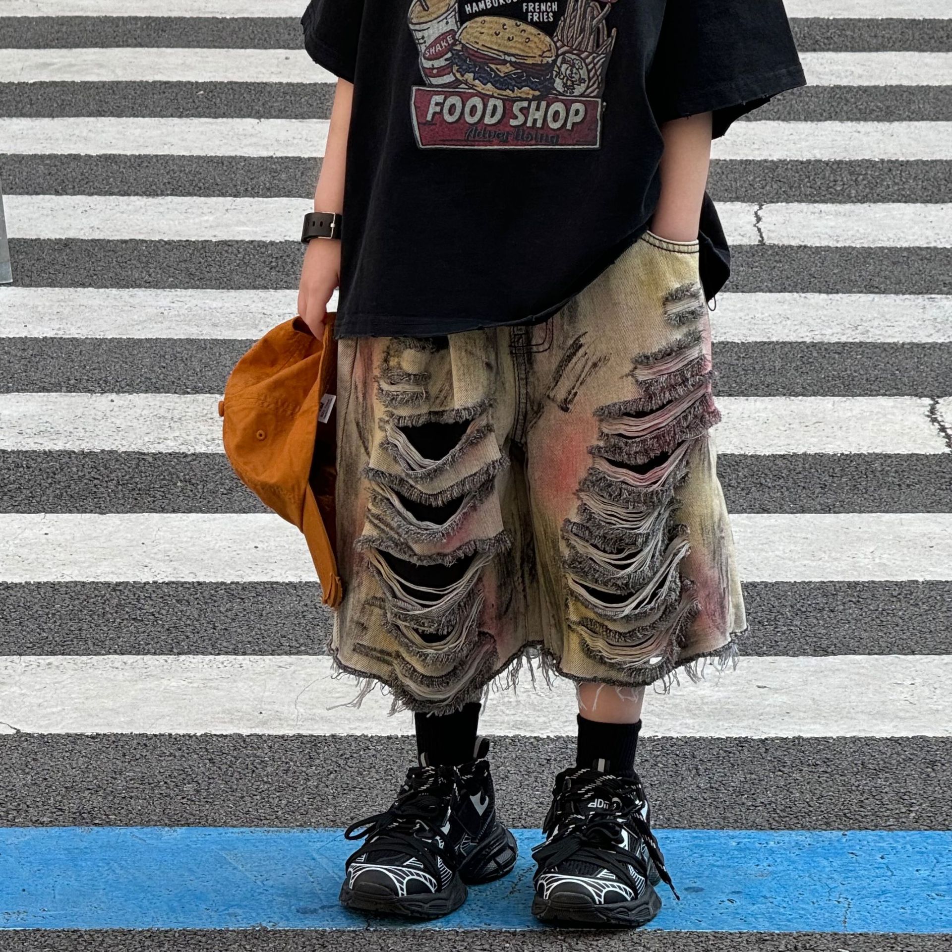타이루 2025 여름 새 도착 한국식 소년 올매치 디자인 센스 스트리트 아메리칸 리핑 청바지 어린이 반바지스토어 가기