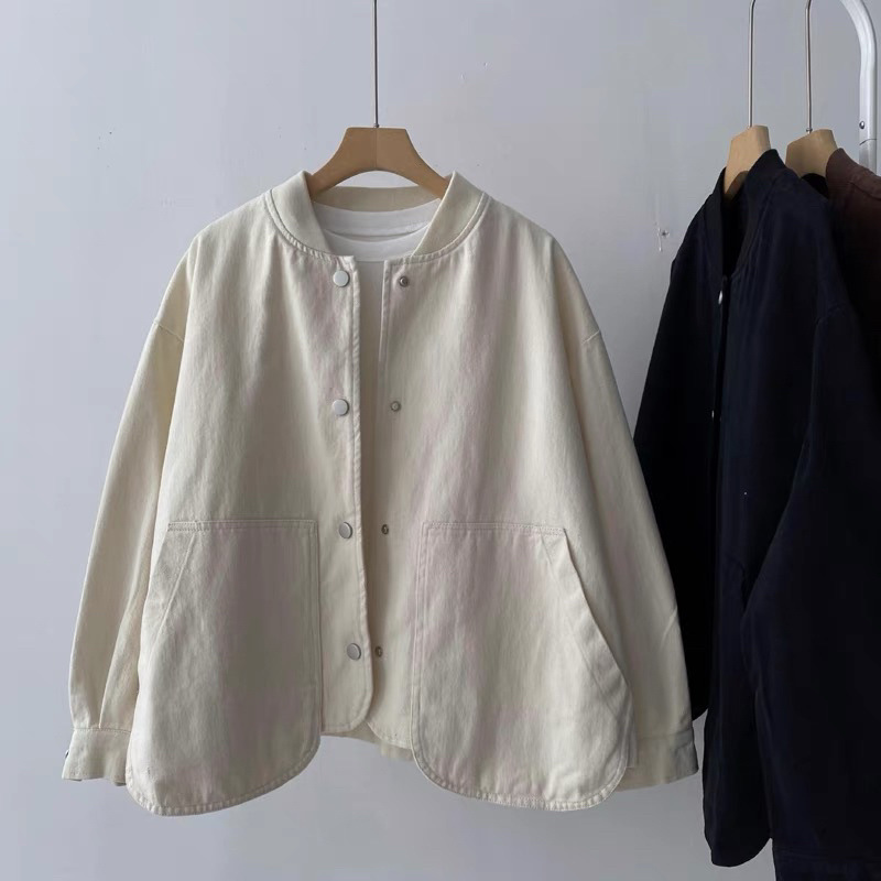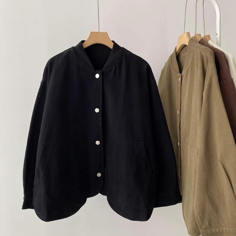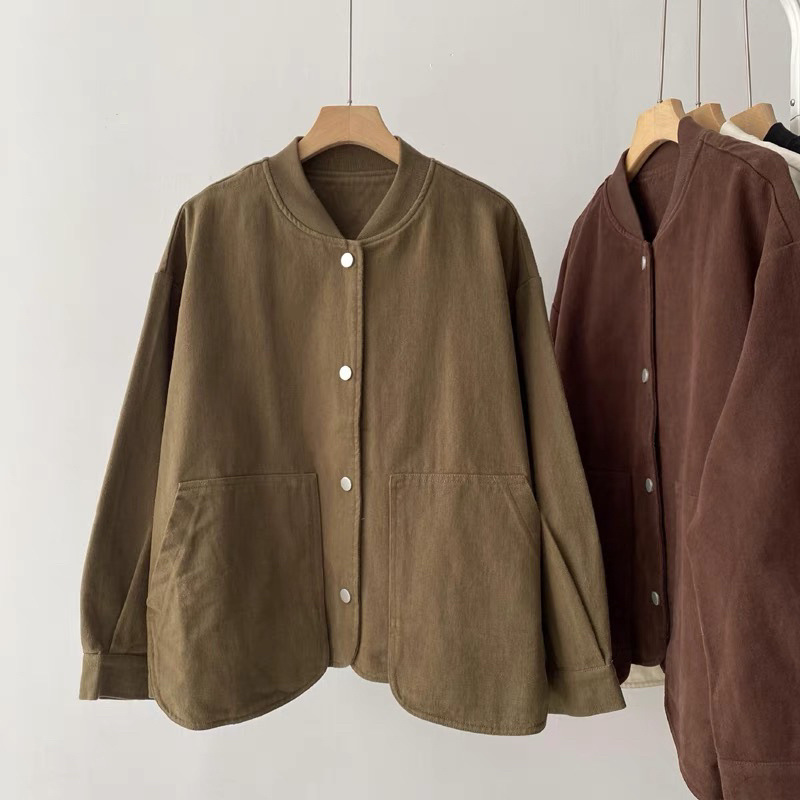 수직 칼라 코튼 재킷 여성의 봄과 가을 새로운 느슨한 슬림 한국 스타일 간단한 기본 작업복 긴 소매 탑스토어 가기