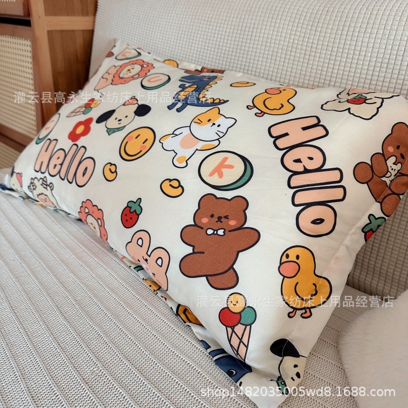 기숙사용 도매 베개 커버 단일 팩 단색 만화 편안한 베개 커버 두꺼운 탈착식 세탁 가능 원피스