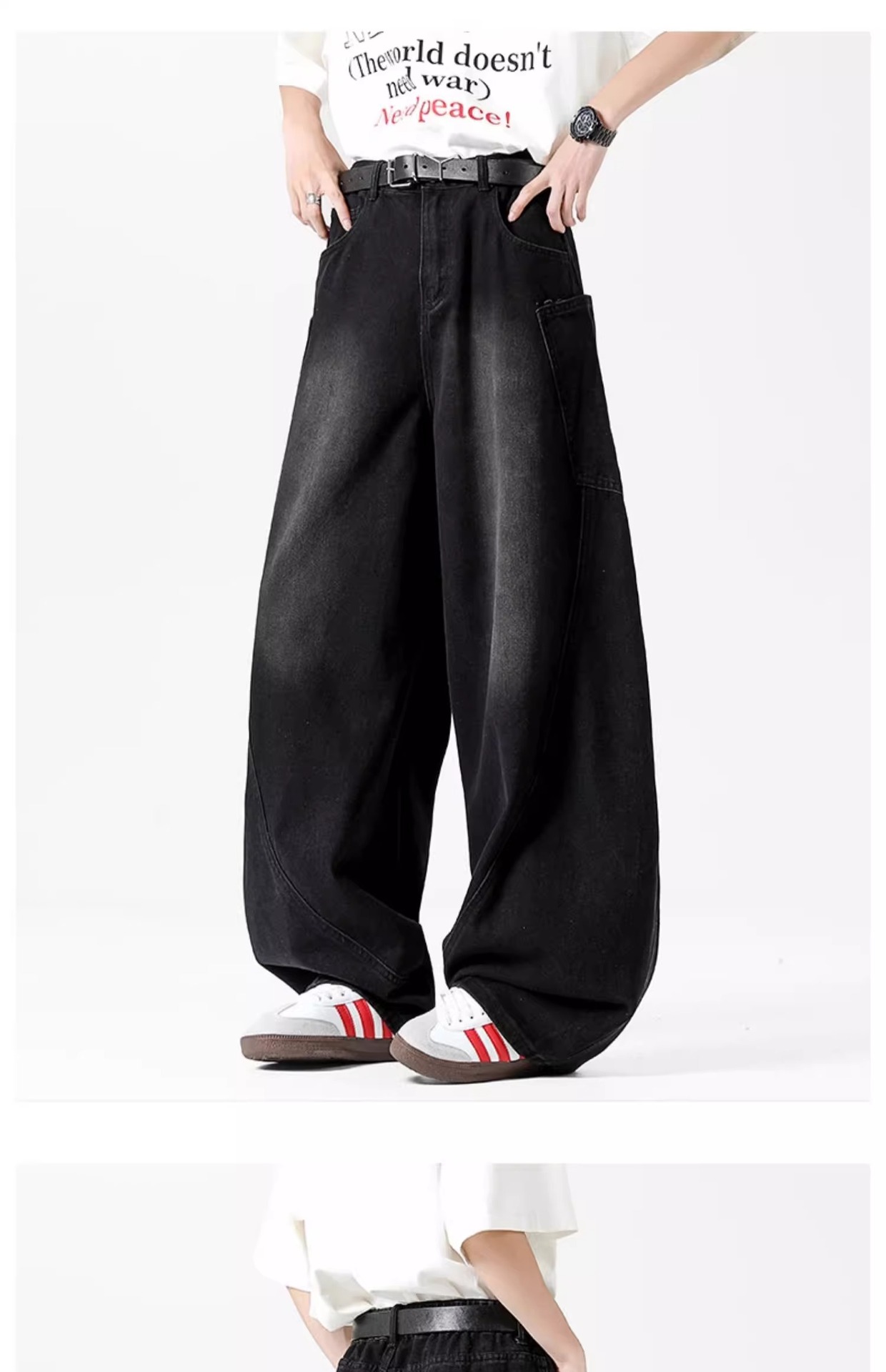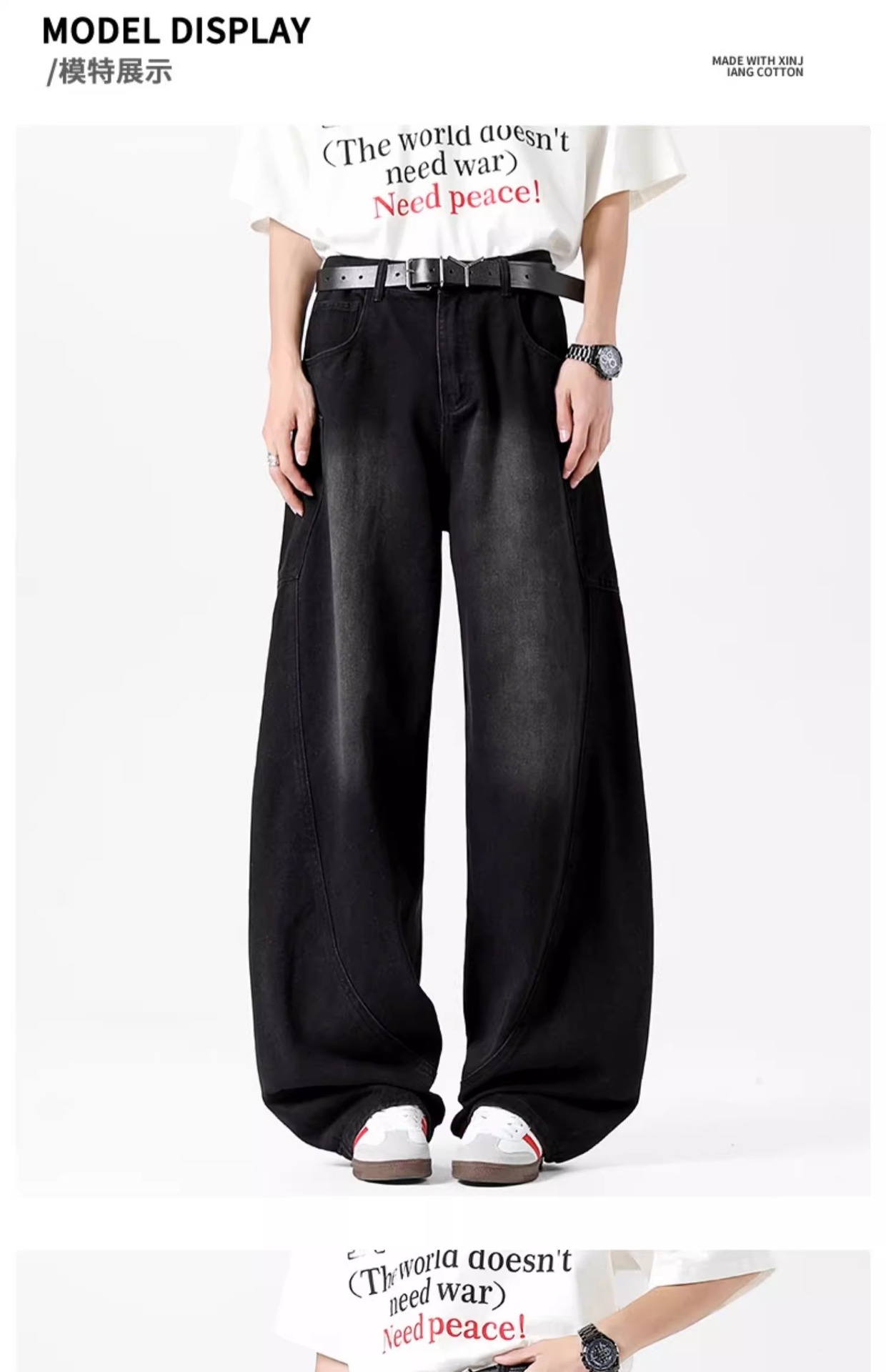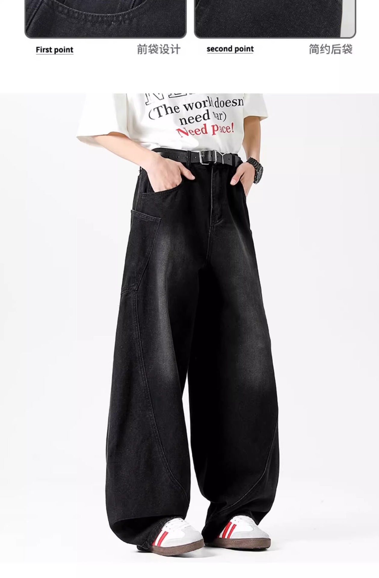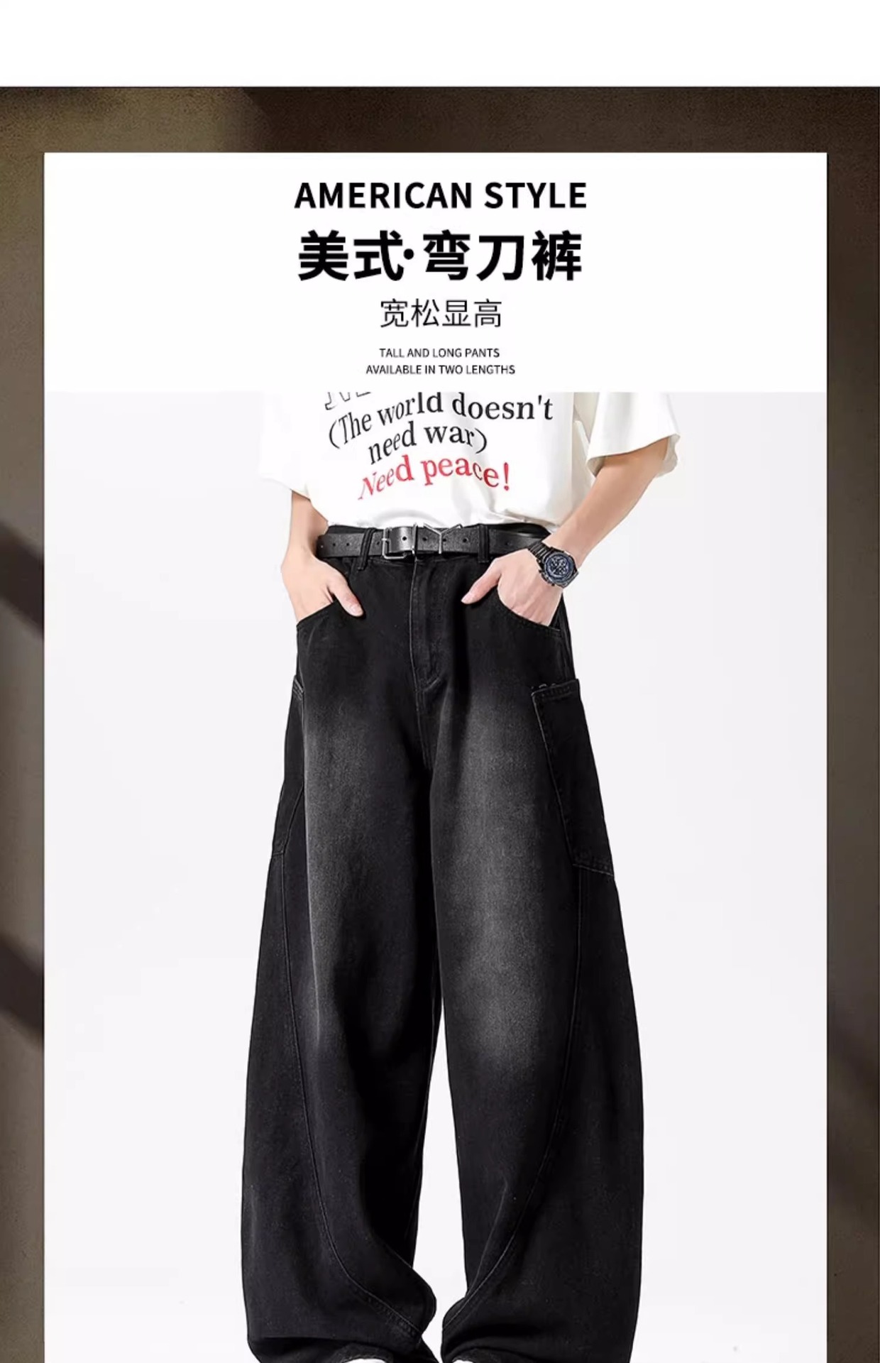 NASA 봄 새로운 블랙 레트로 미국 시미 타르 청바지 높은 감각 캐주얼 남성용 루즈 트렌디 바지
