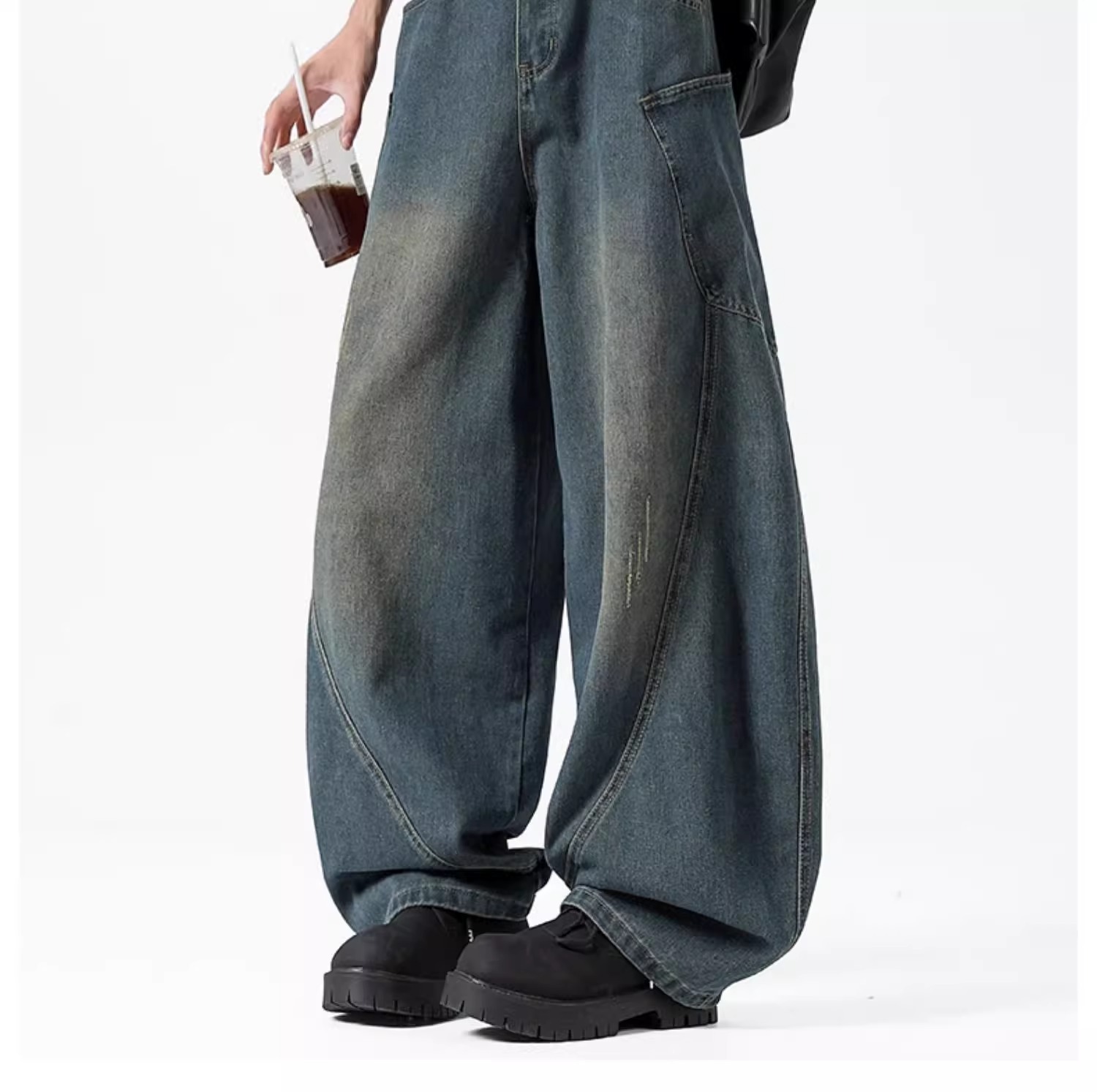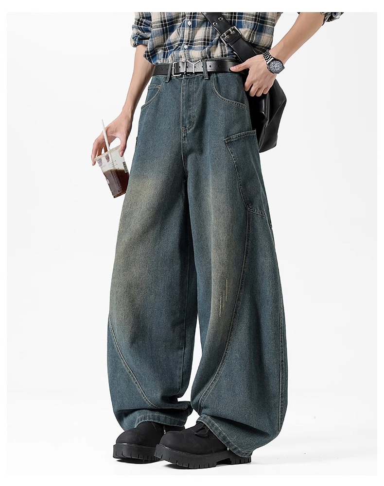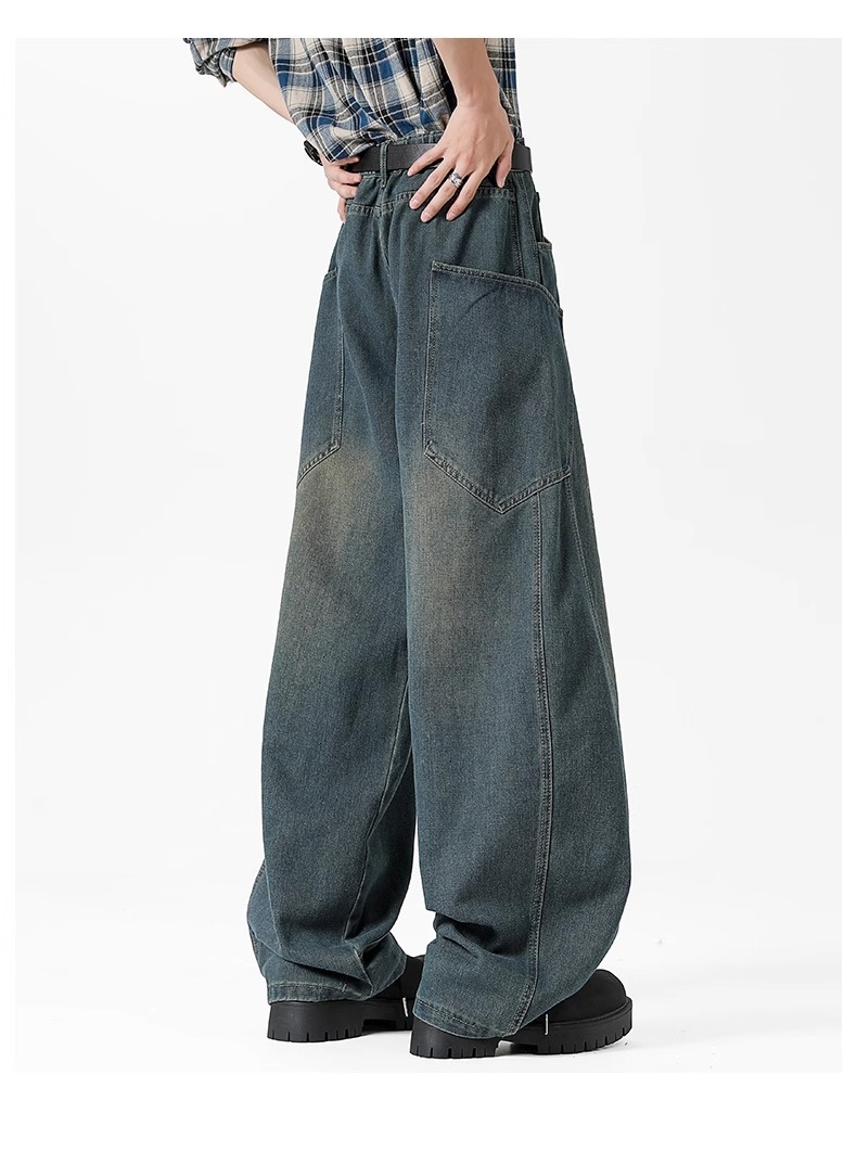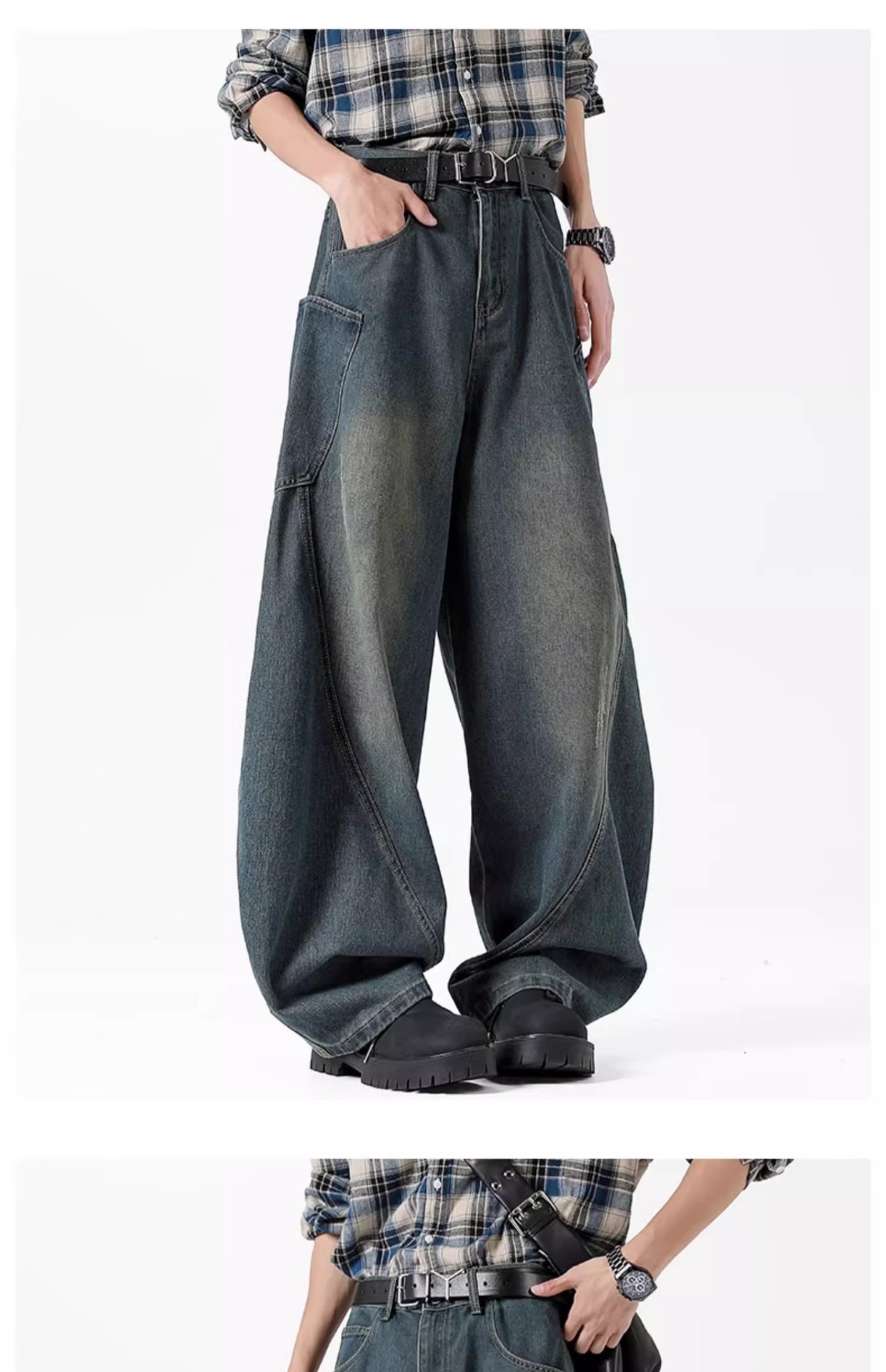 NASA 봄 새로운 블랙 레트로 미국 시미 타르 청바지 높은 감각 캐주얼 남성용 루즈 트렌디 바지