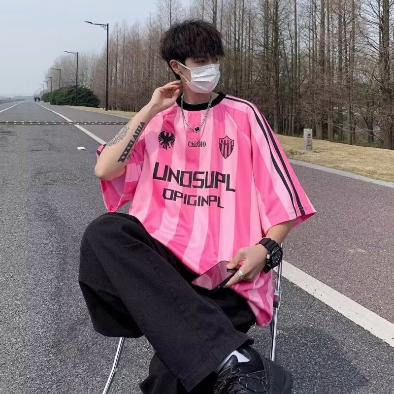 미국 커플의 반팔 티셔츠 인기 브랜드 인스 타 그램 스타일 여름 아이스 실크 메쉬 저지 루즈 인기 브랜드 여성용 퀵 드라이 반팔 티셔츠