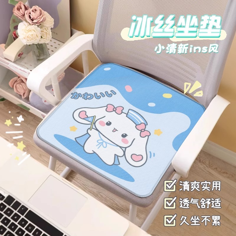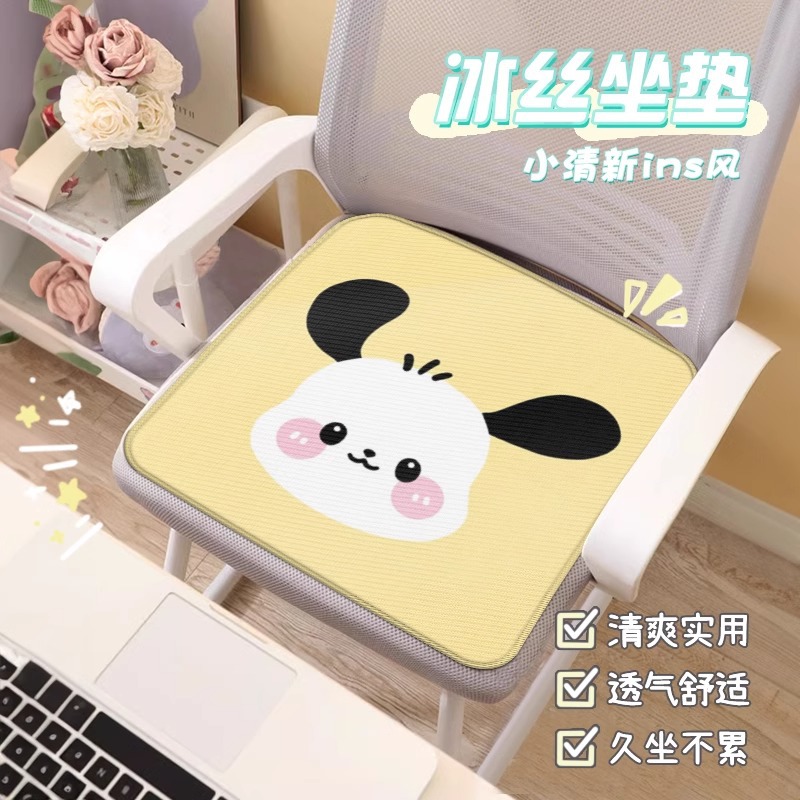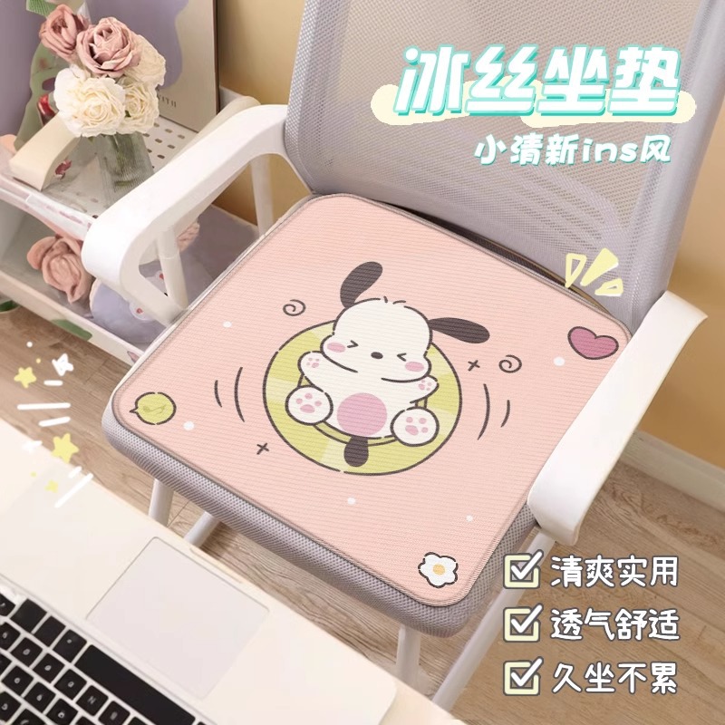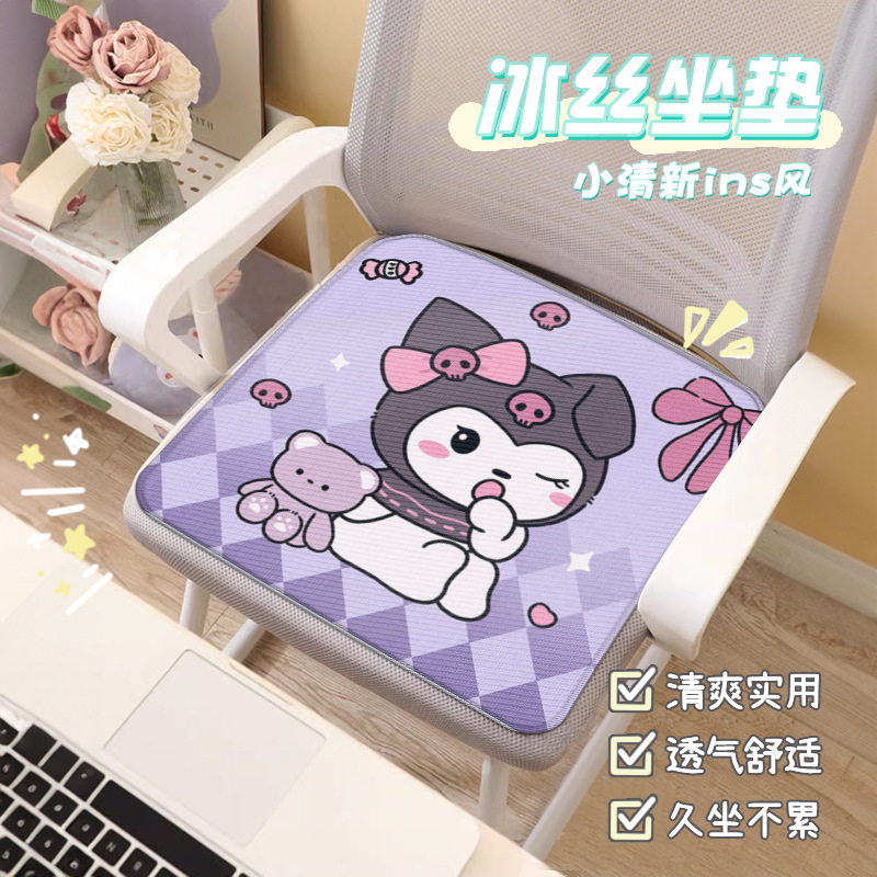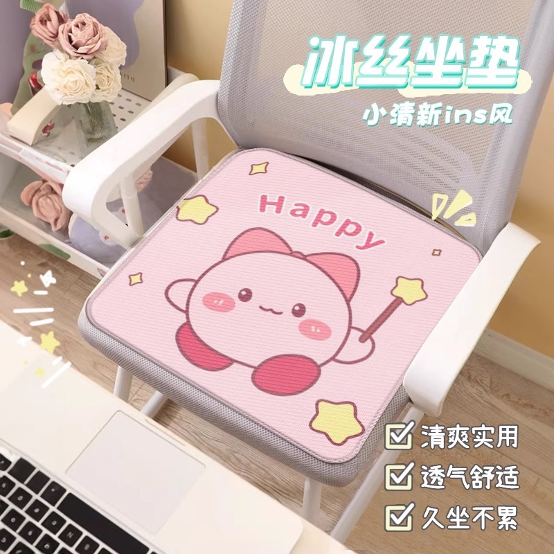 사계절 의자 쿠션 여름 통기성 미끄럼 방지 사무실 의자 쿠션 학생용 쿠션 아이스 실크 프린트 쿨링 쿠션