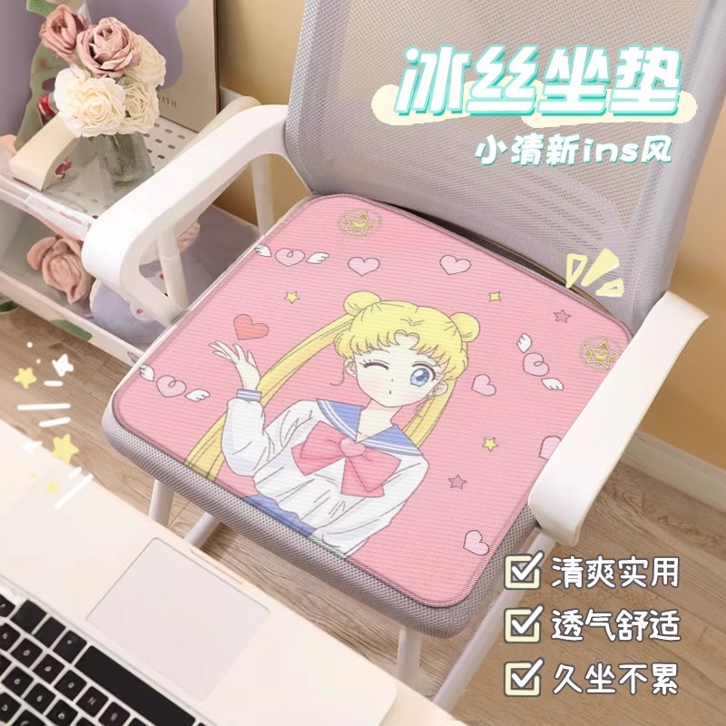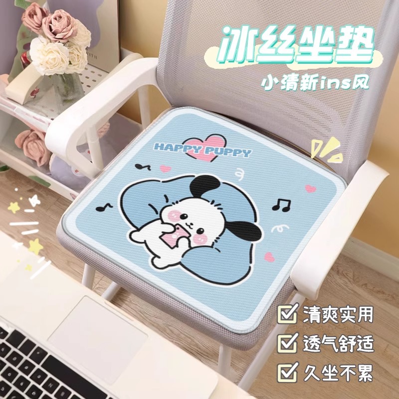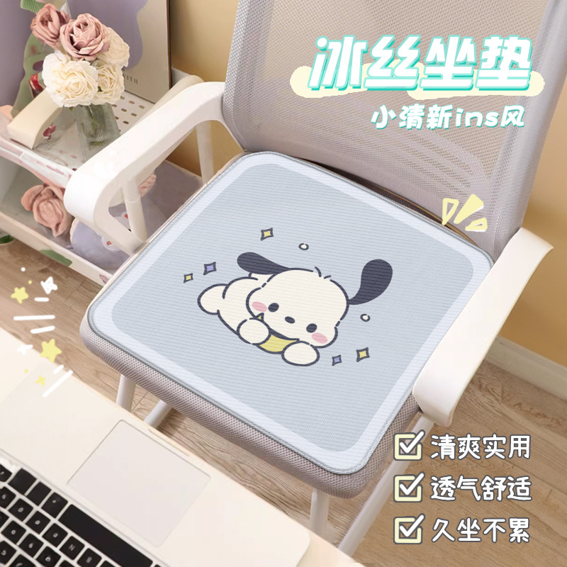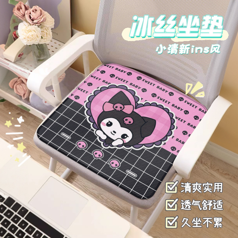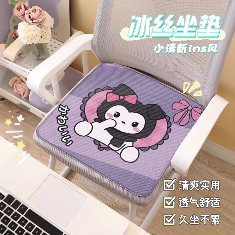 사계절 의자 쿠션 여름 통기성 미끄럼 방지 사무실 의자 쿠션 학생용 쿠션 아이스 실크 프린트 쿨링 쿠션
