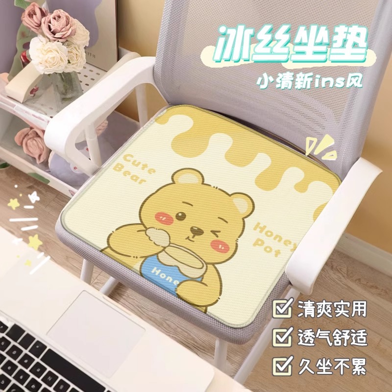 사계절 의자 쿠션 여름 통기성 미끄럼 방지 사무실 의자 쿠션 학생용 쿠션 아이스 실크 프린트 쿨링 쿠션스토어 가기