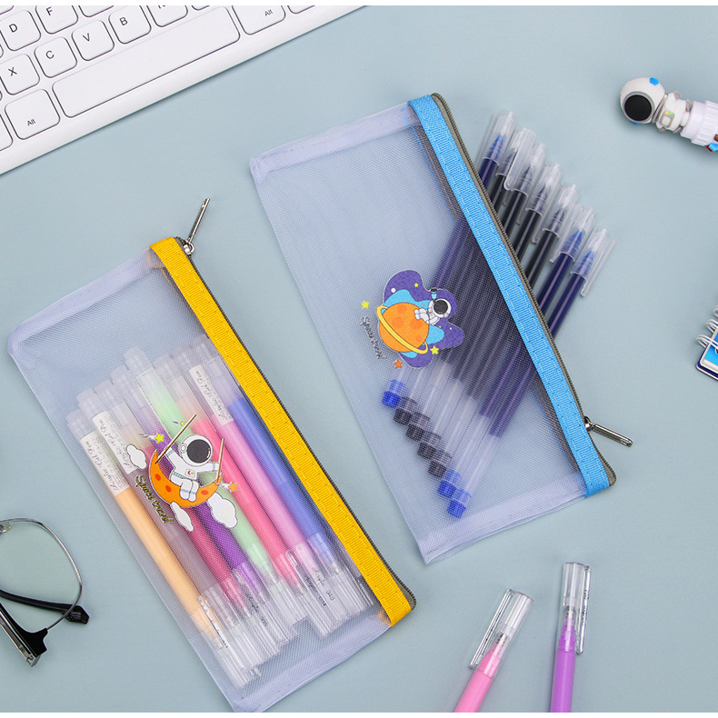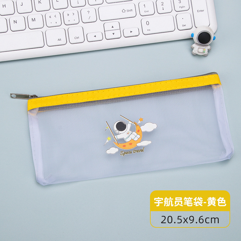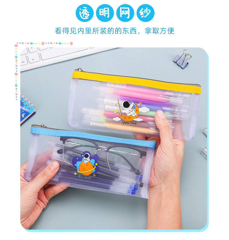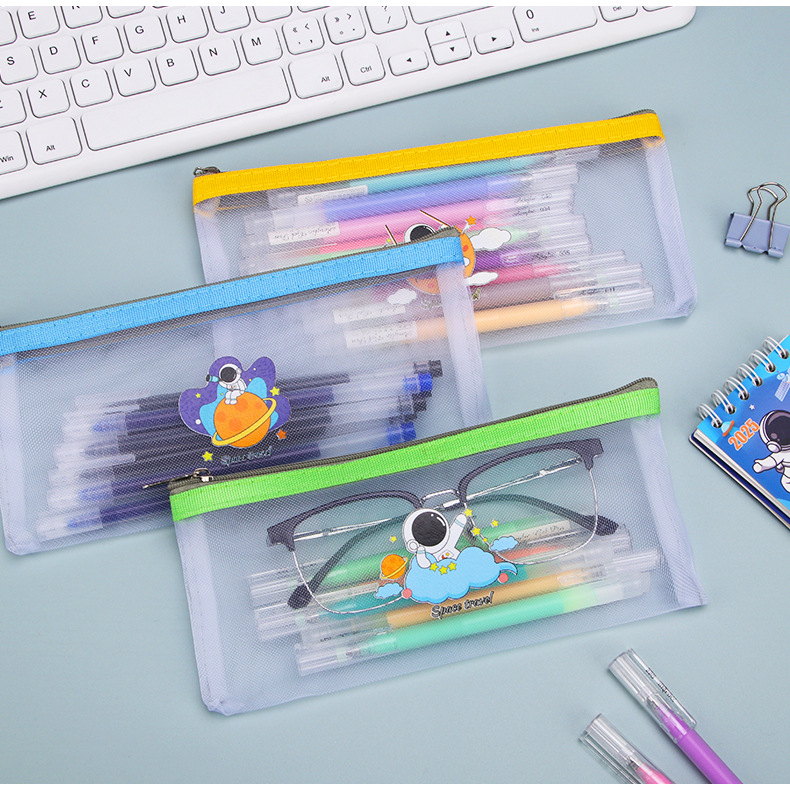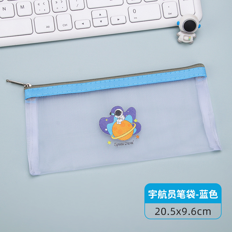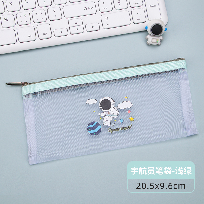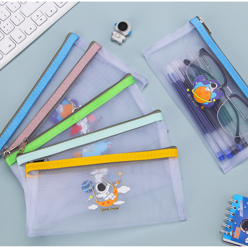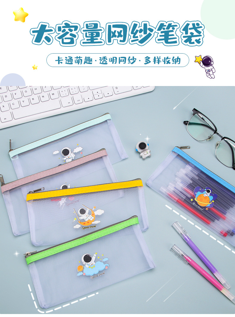 새로운 메쉬 연필 가방 우주 비행사 간단한 지퍼 파일 가방 학생 시험 대용량 연필 가방 문구 도매스토어 가기