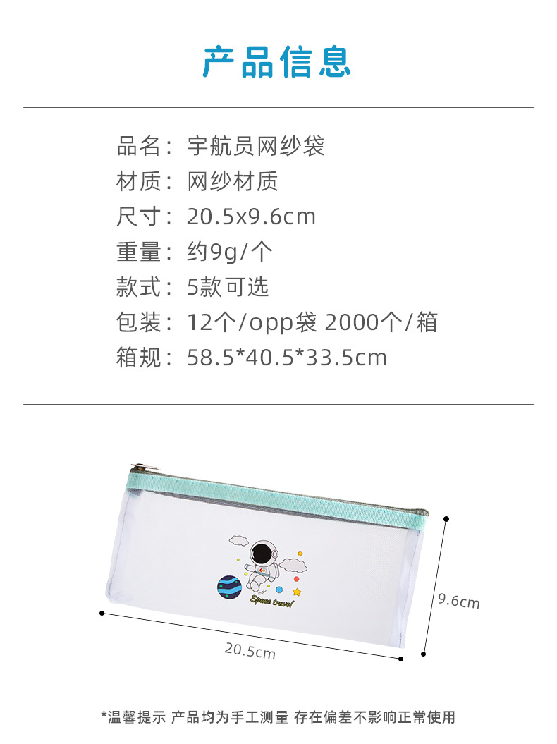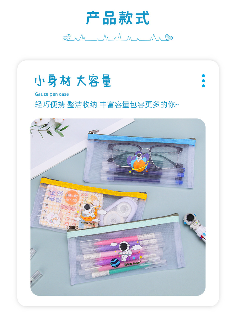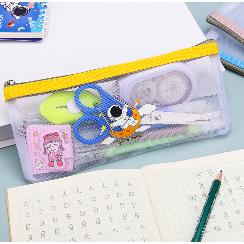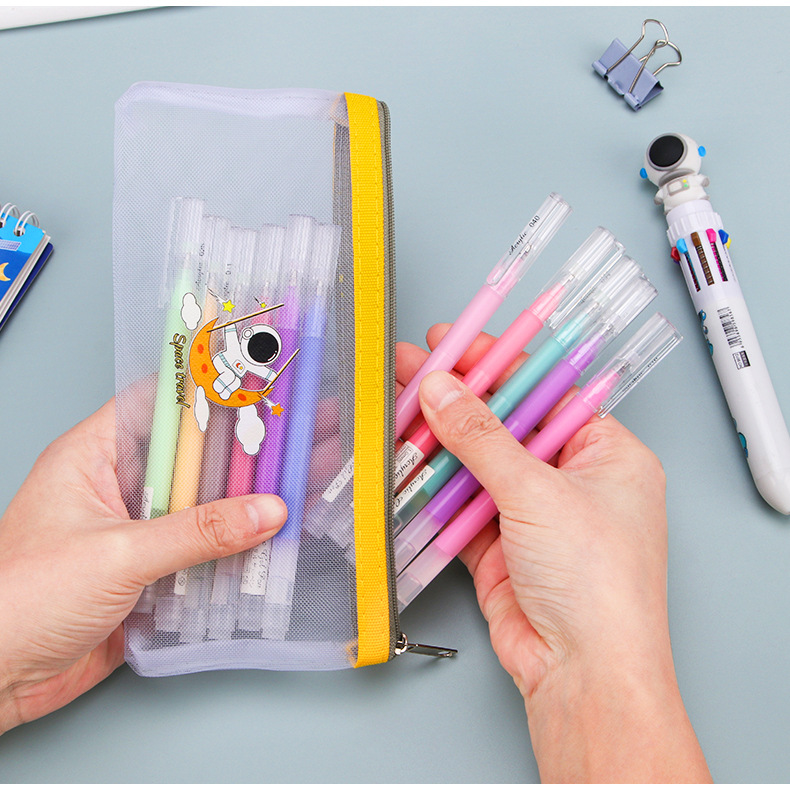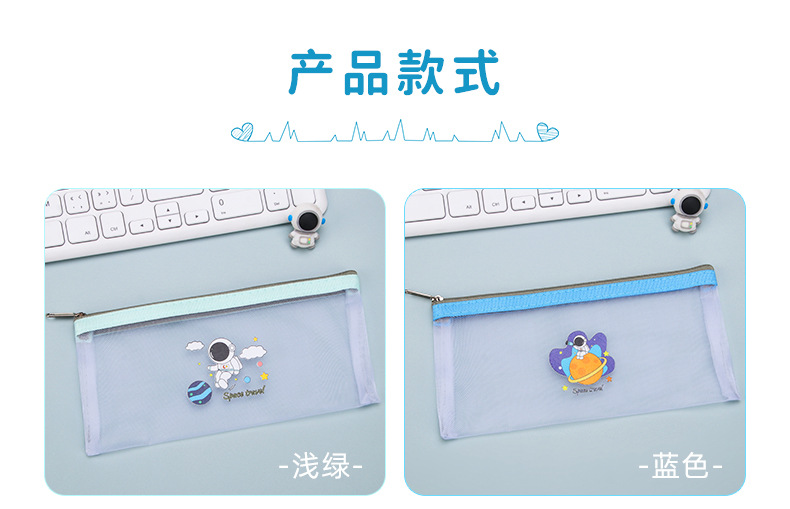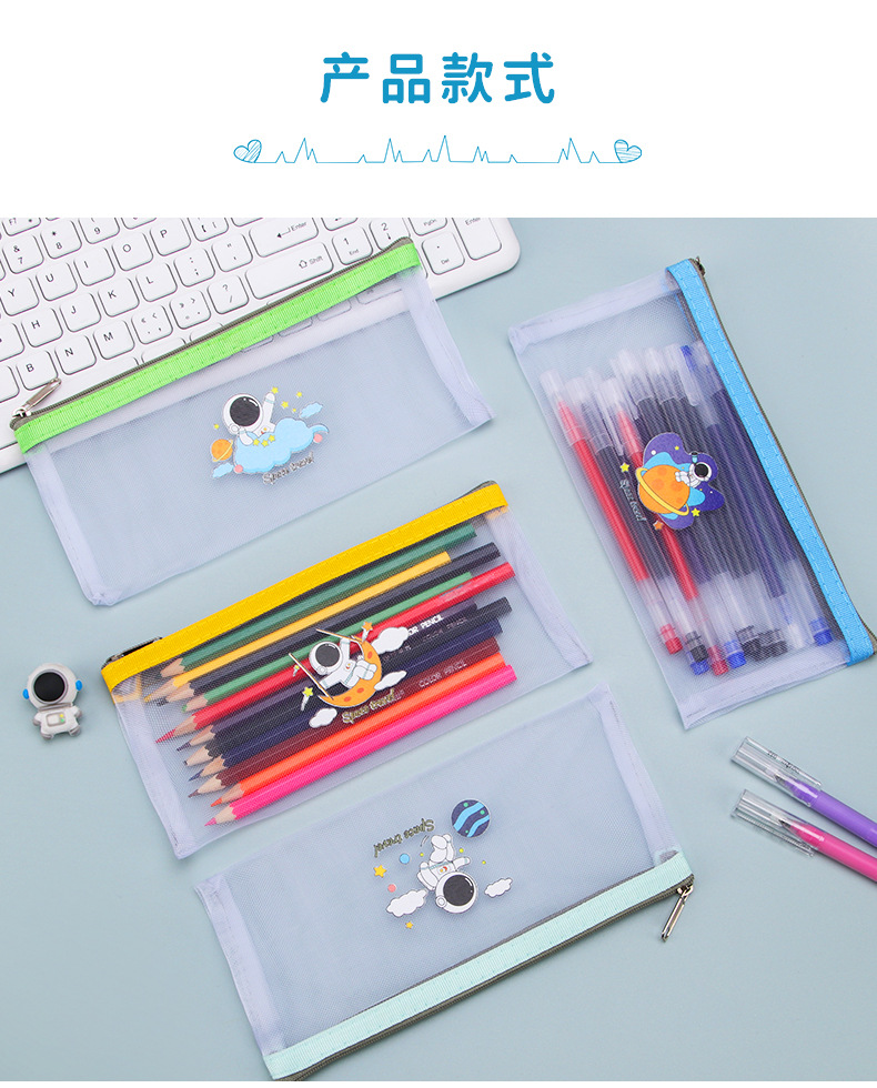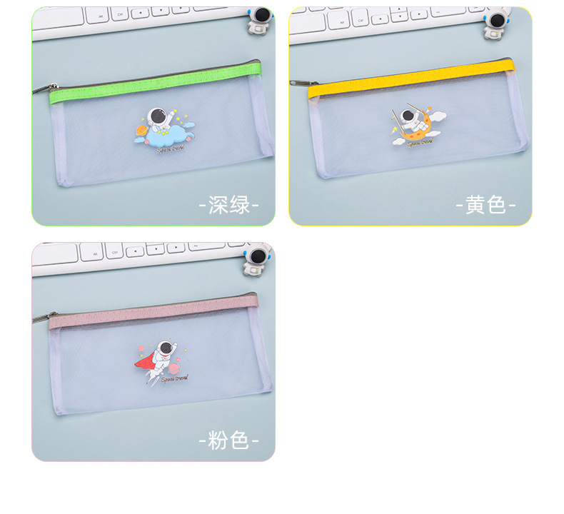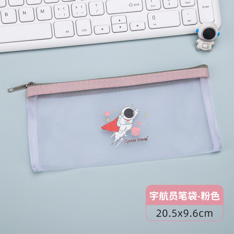 새로운 메쉬 연필 가방 우주 비행사 간단한 지퍼 파일 가방 학생 시험 대용량 연필 가방 문구 도매스토어 가기