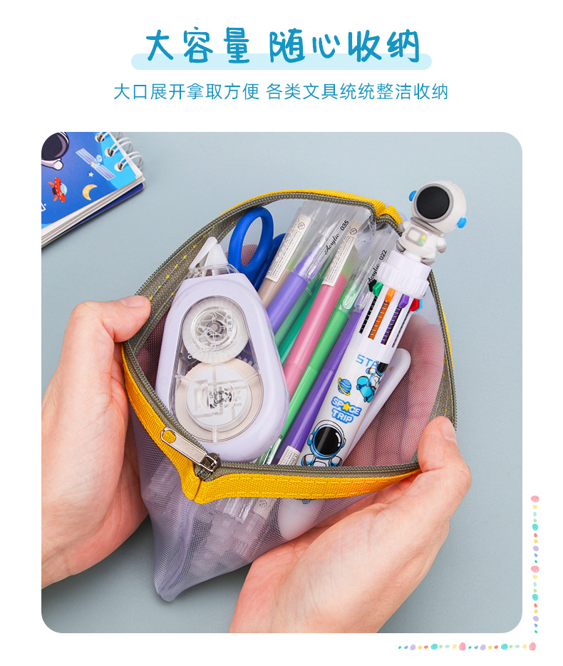새로운 메쉬 연필 가방 우주 비행사 간단한 지퍼 파일 가방 학생 시험 대용량 연필 가방 문구 도매