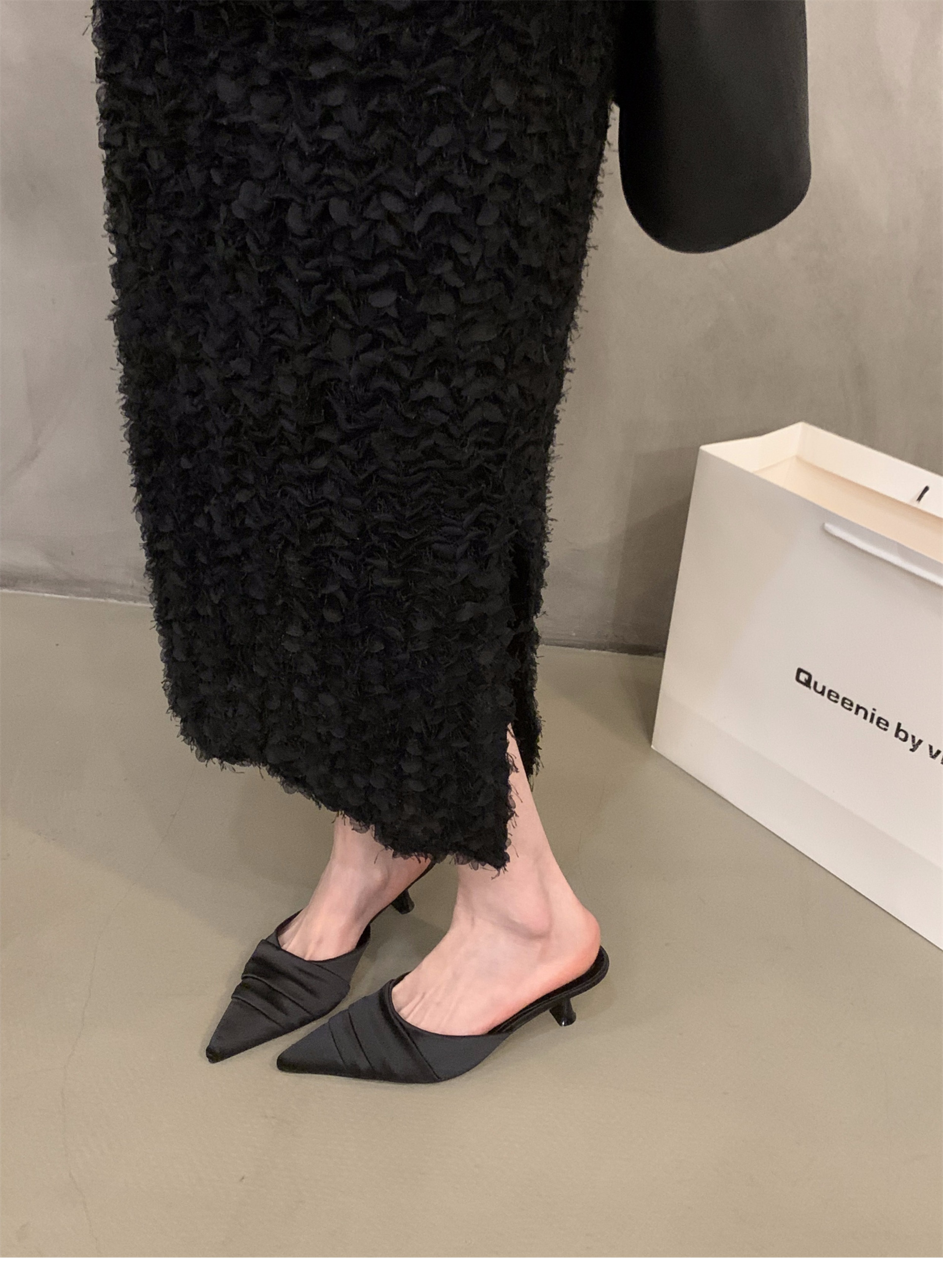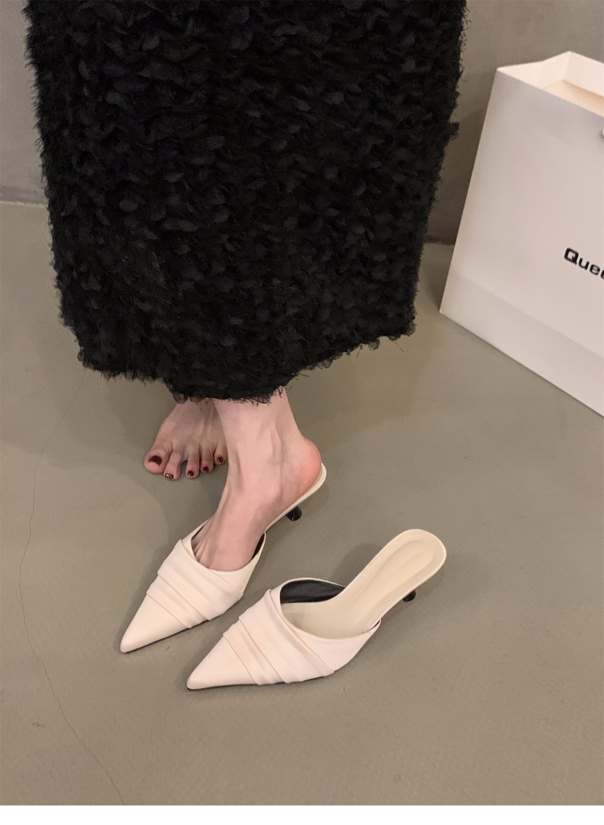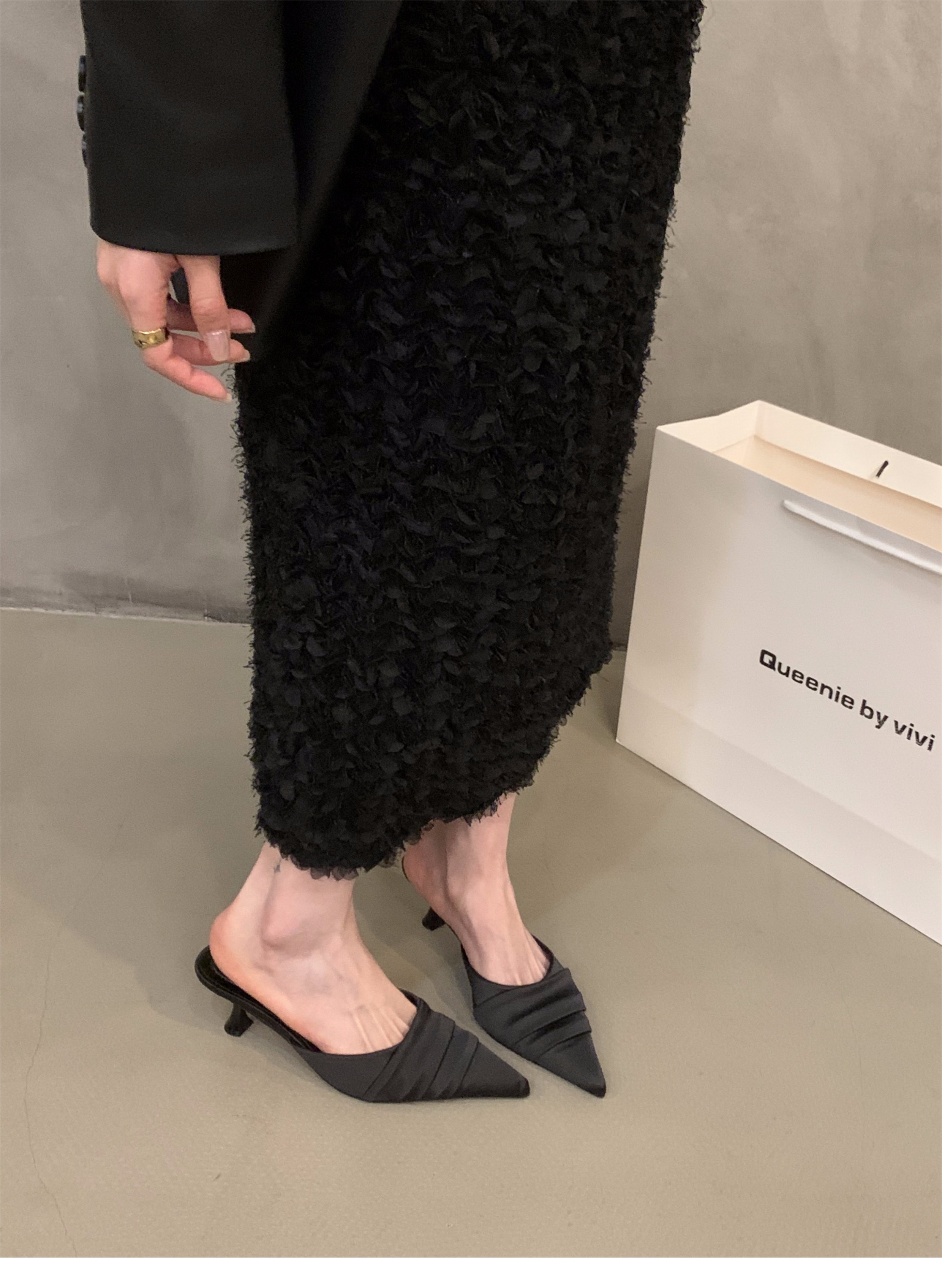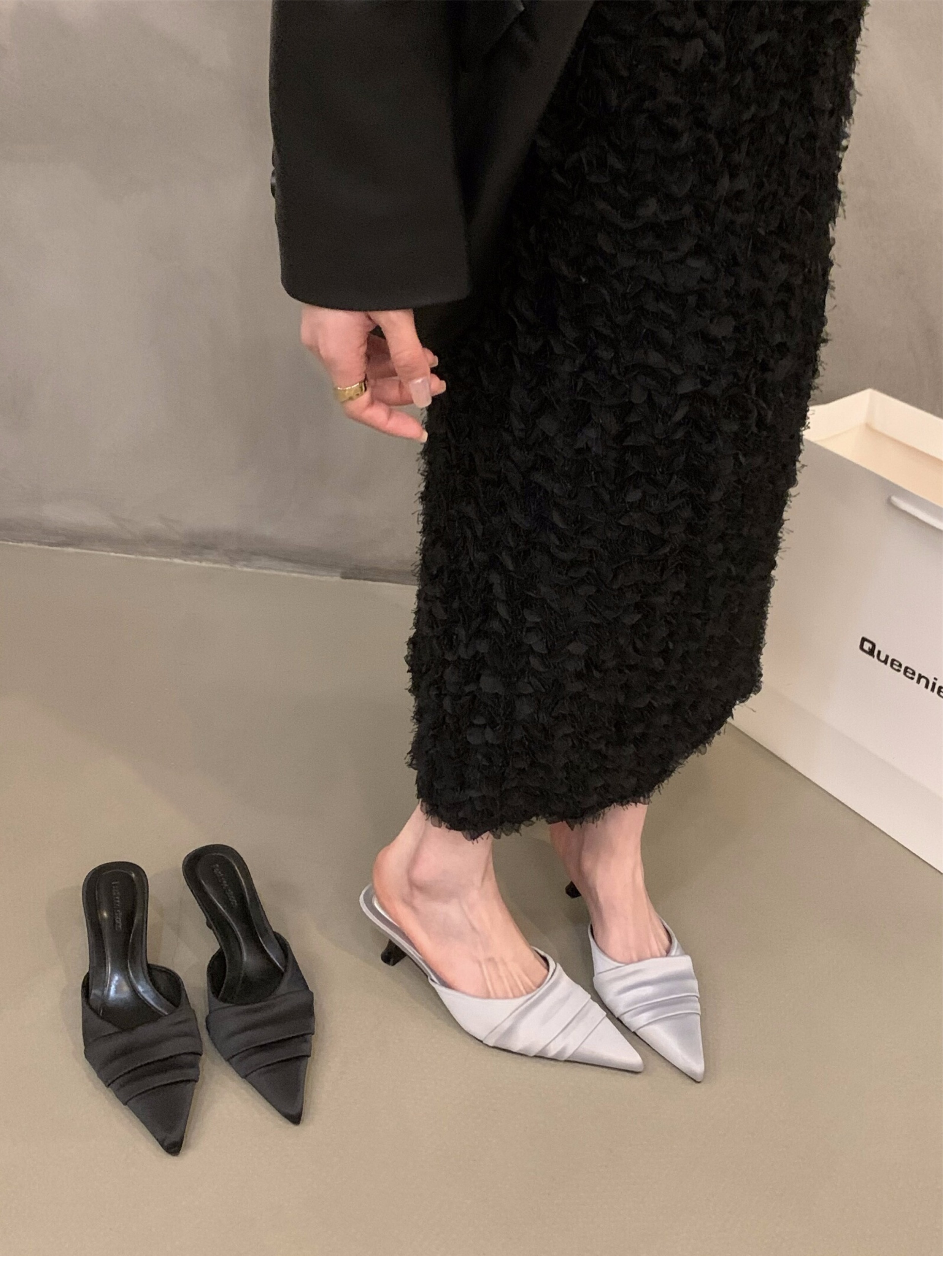 여성용 프렌치 스타일 바오터우 하프 슬리퍼, 2025년 신상 여름 패션 포인티드 토 블랙 하이힐 샌들스토어 가기