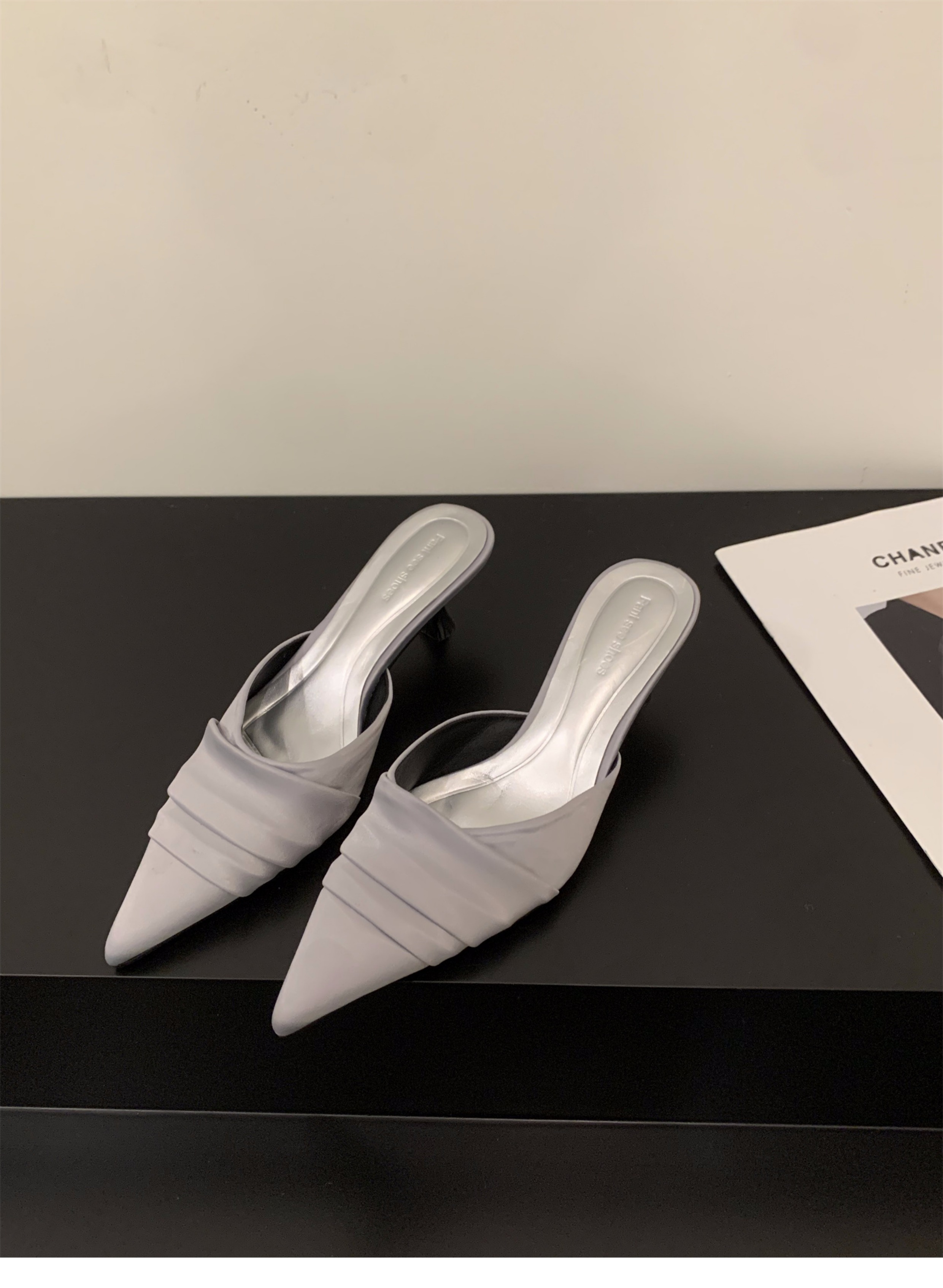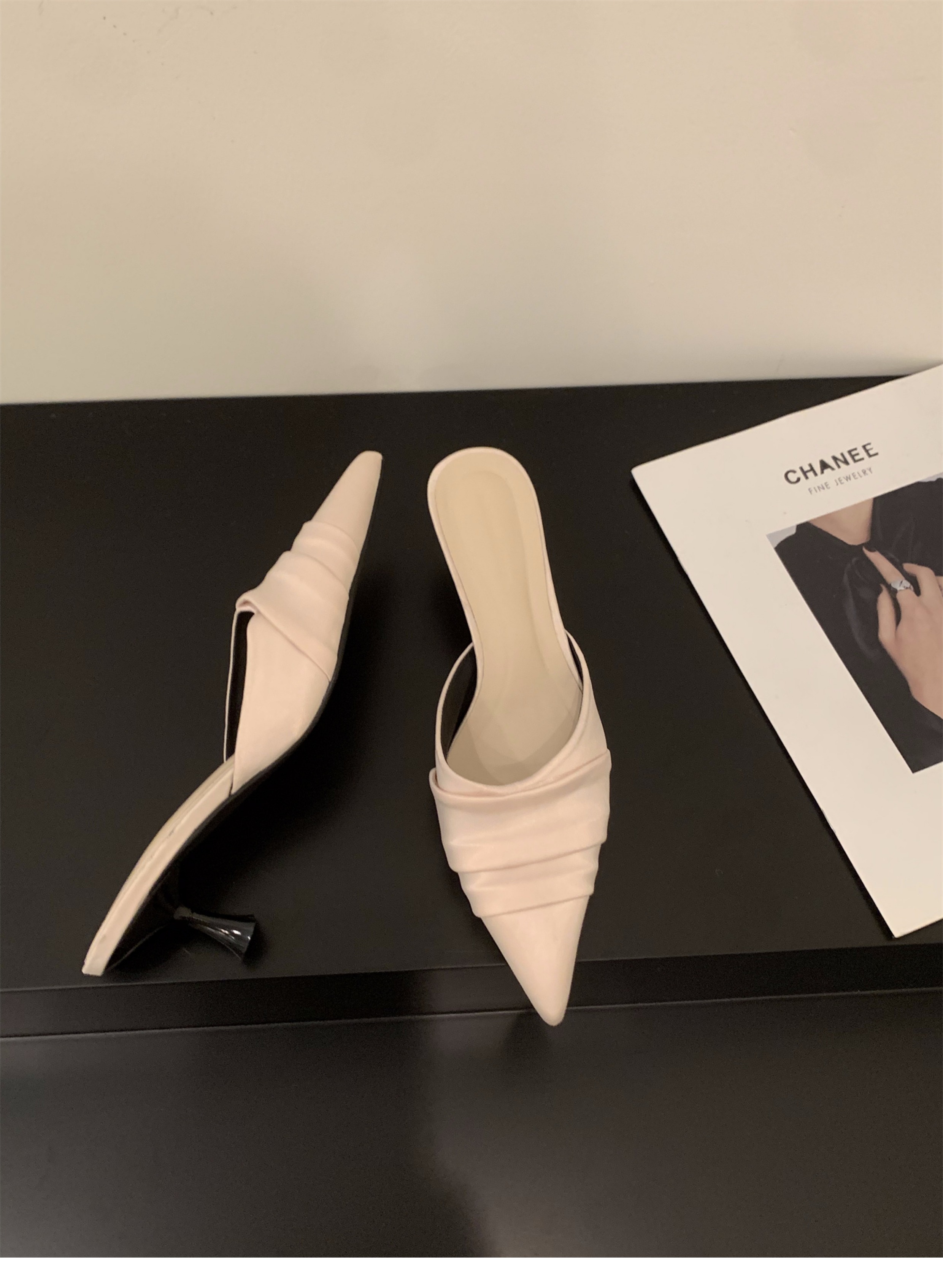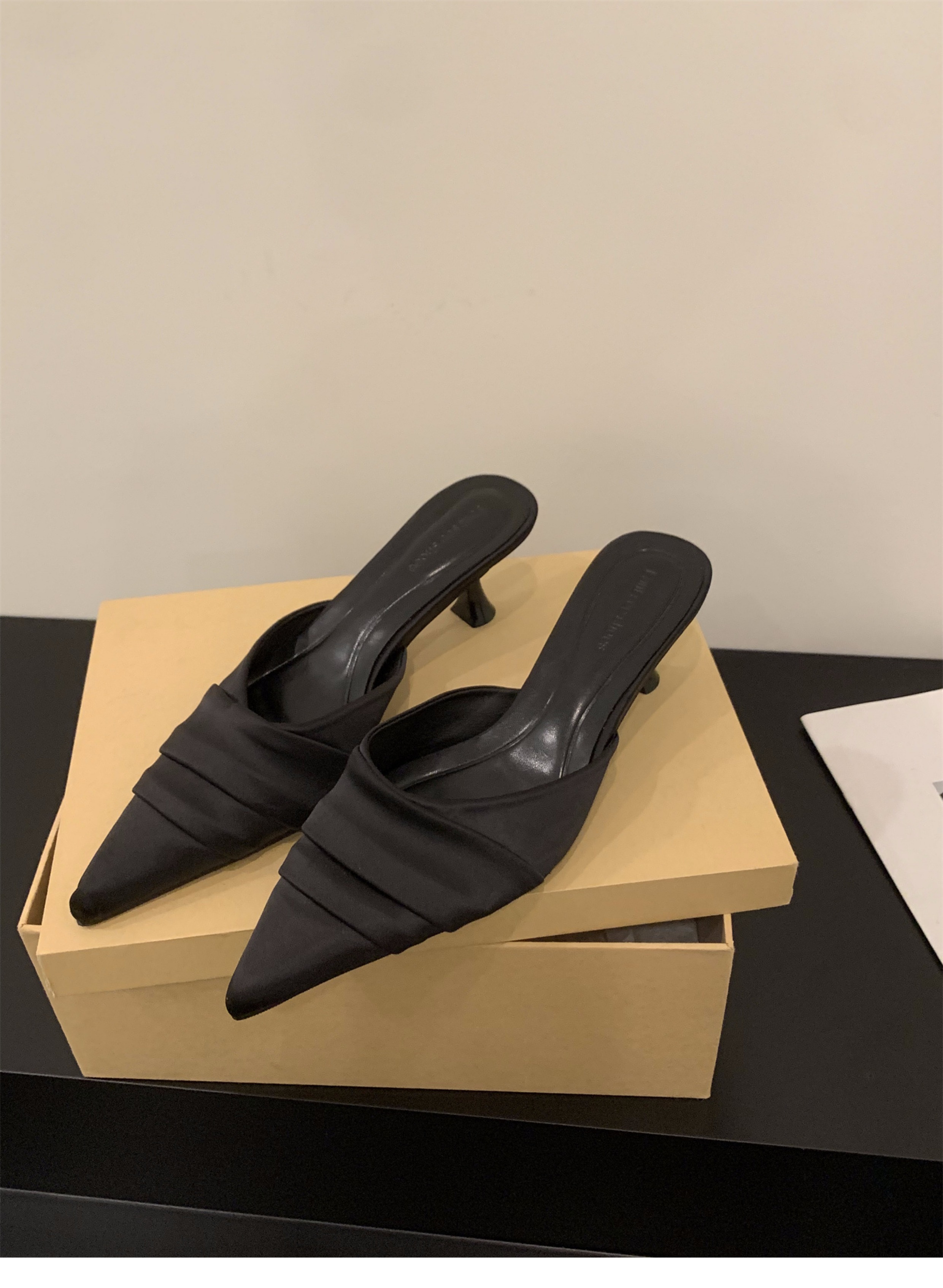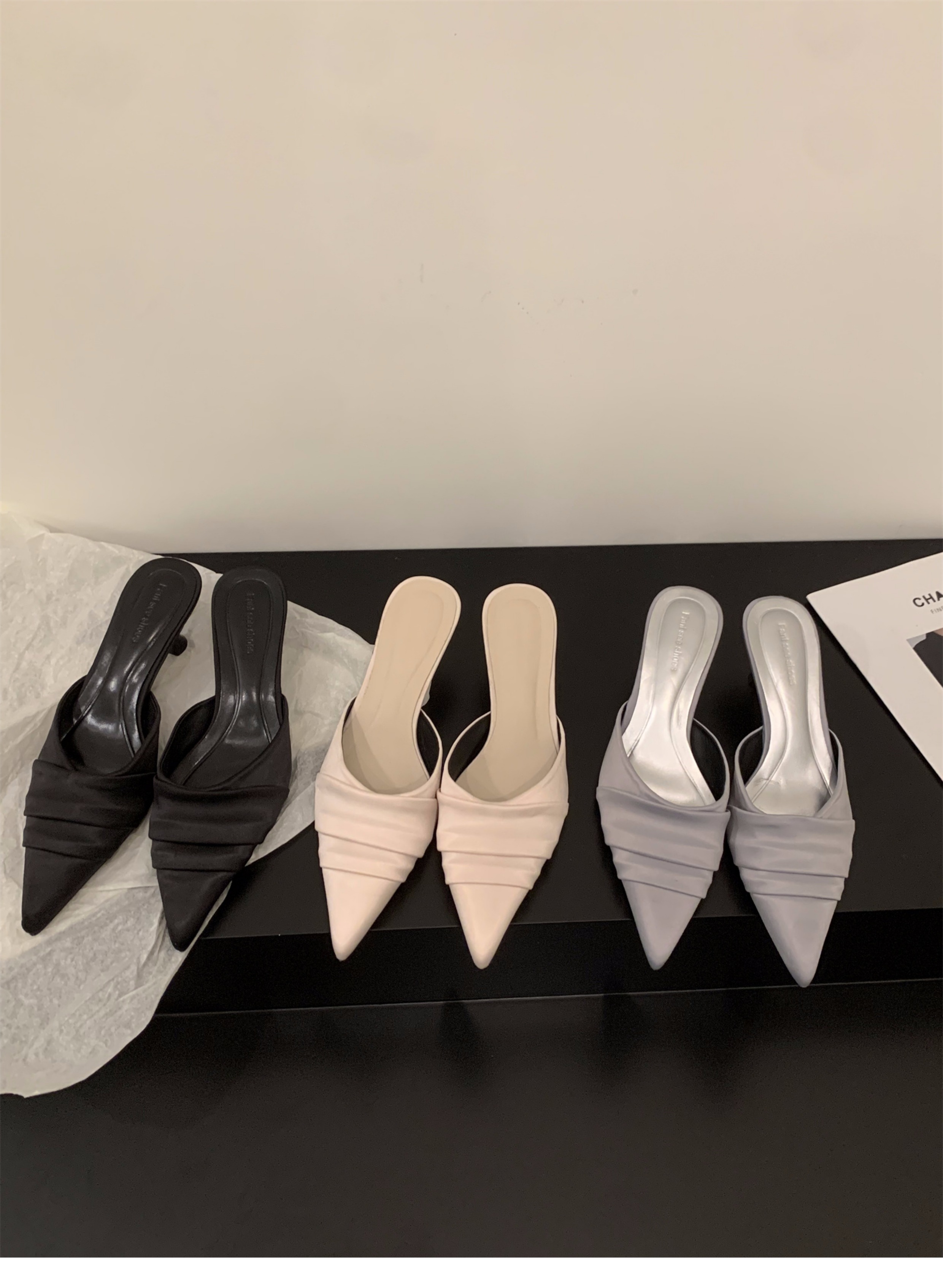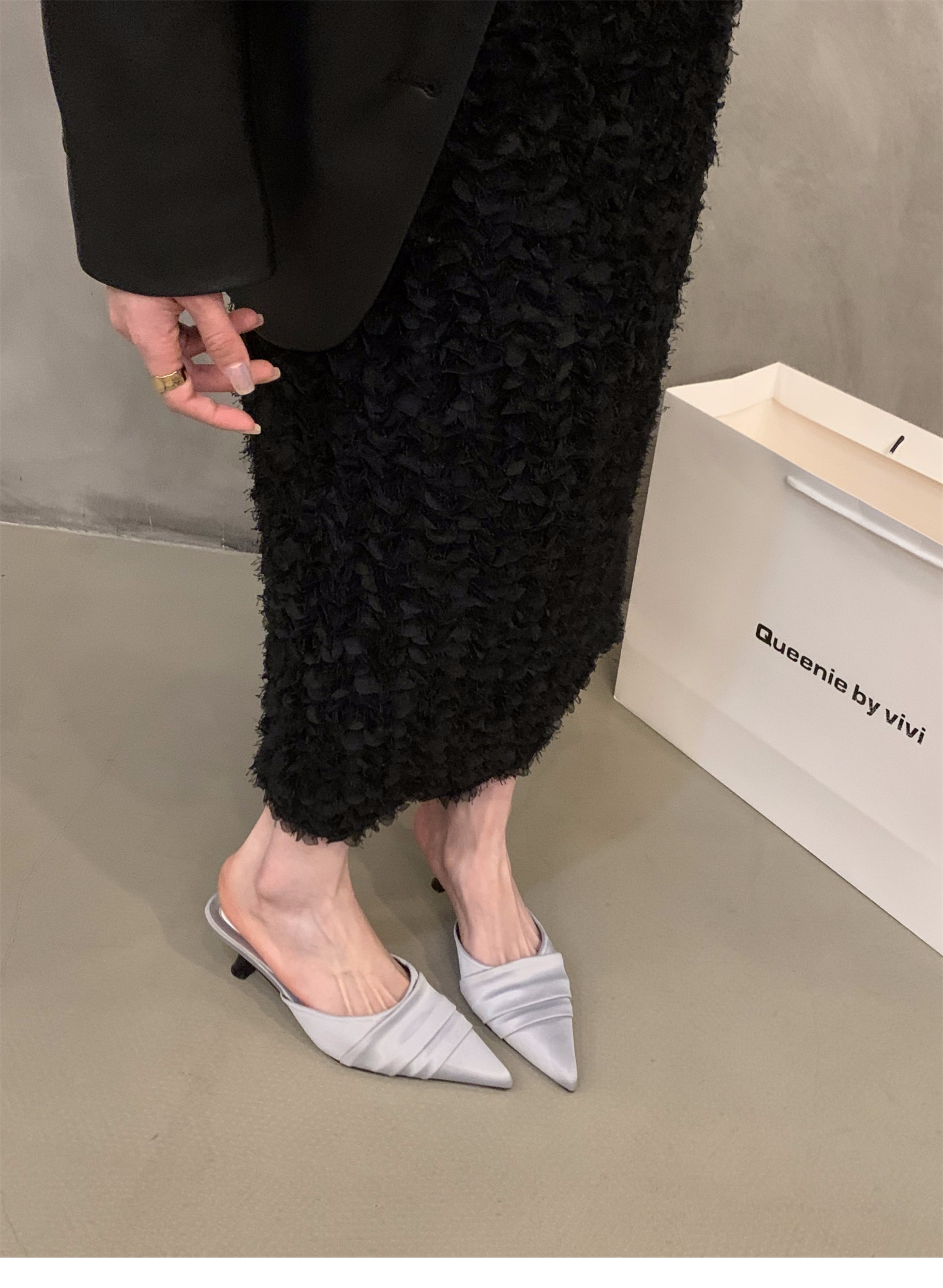 여성용 프렌치 스타일 바오터우 하프 슬리퍼, 2025년 신상 여름 패션 포인티드 토 블랙 하이힐 샌들스토어 가기