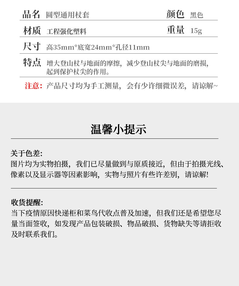 도매 트레킹 폴 풋 패드, 미끄럼 방지 패드, 미끄럼 방지 헤드, 원형 폴 팁, 검정색 보호 고무 커버, 범용 폴 팁 커버스토어 가기